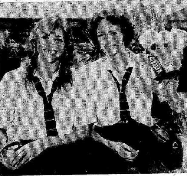 Moscow swimming medal hopes Liza Forrest, left, and Georgie Parkes with their koala mascot when the team left Sydney for pre-Games training in France this week.