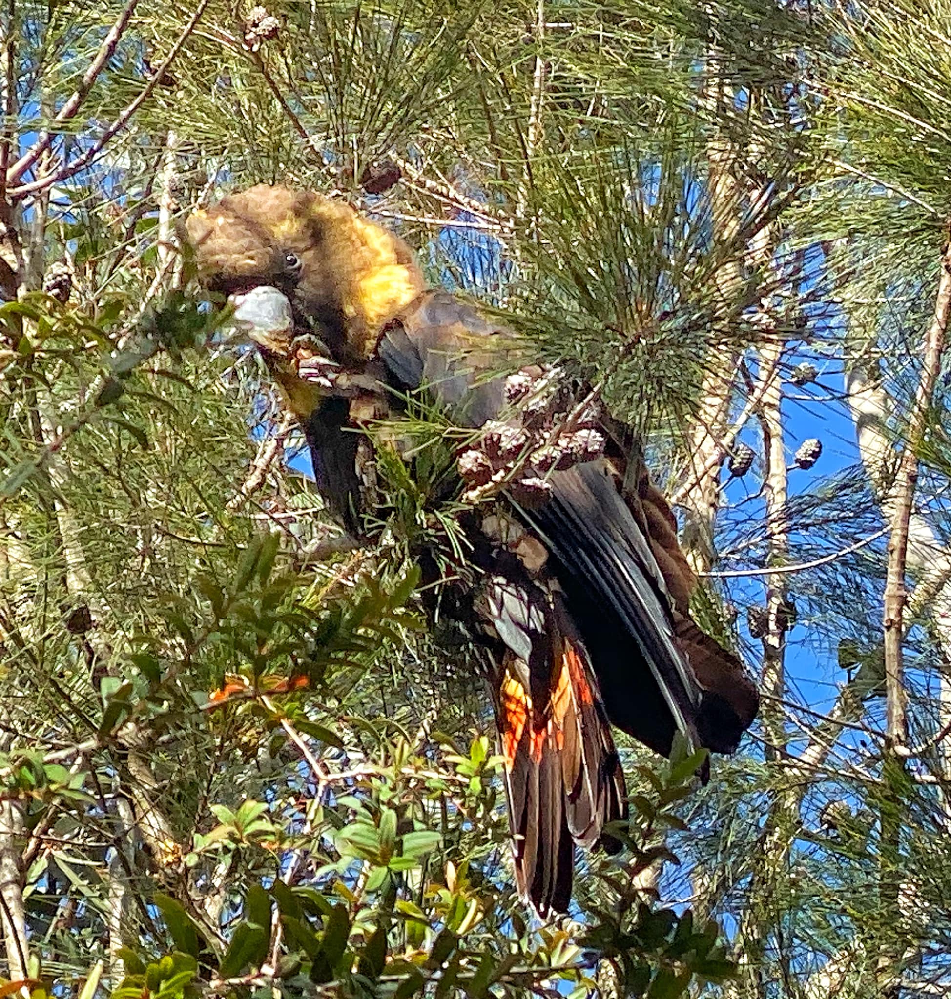 Black cockatoo crunching up Casuarina nuts.