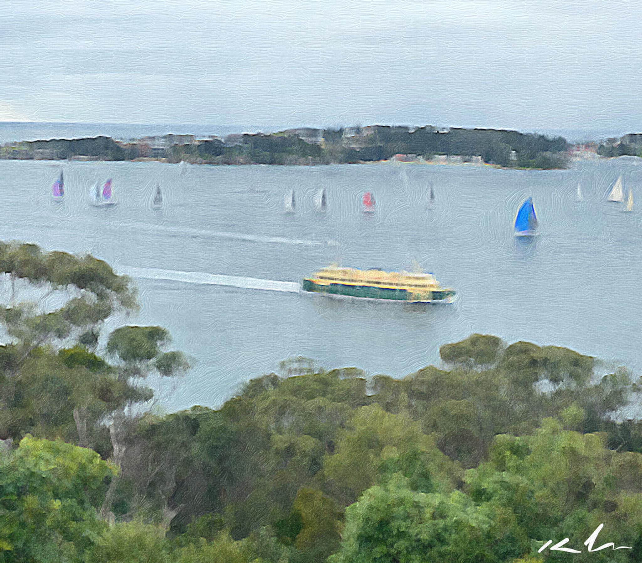 View from George’s Heights with quintessentially classic Manly Ferry, August 9, 2020