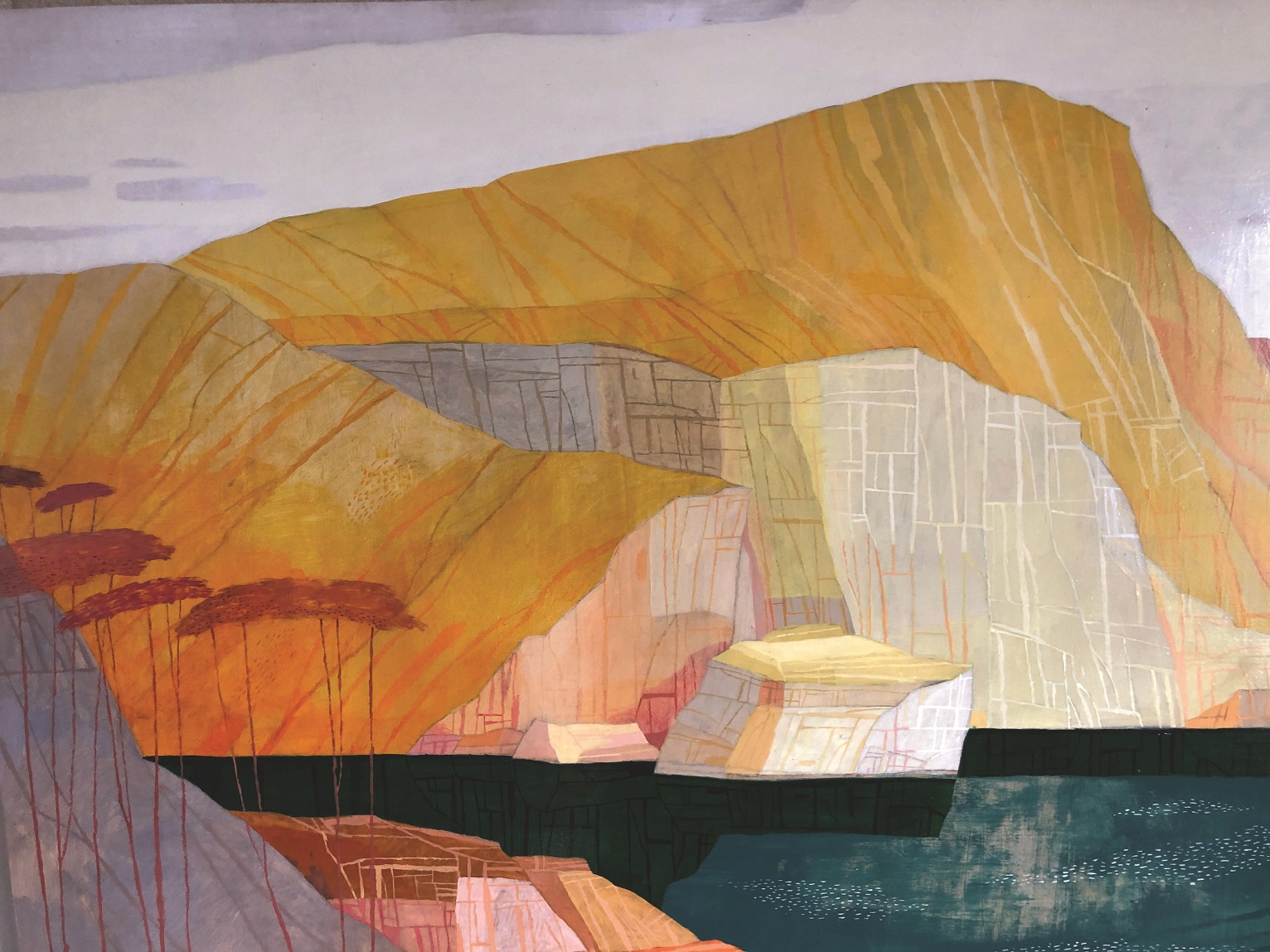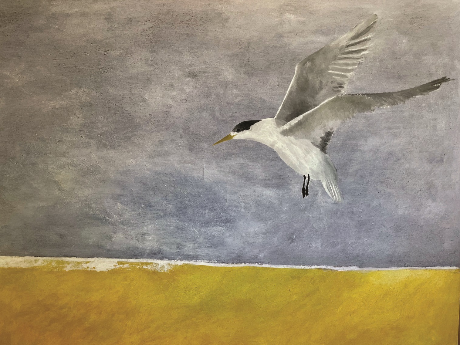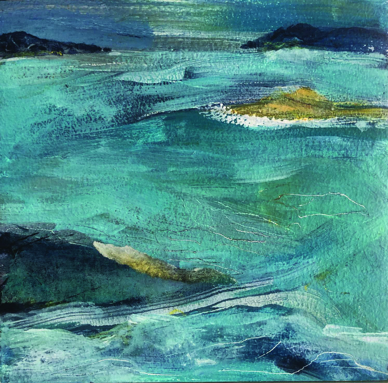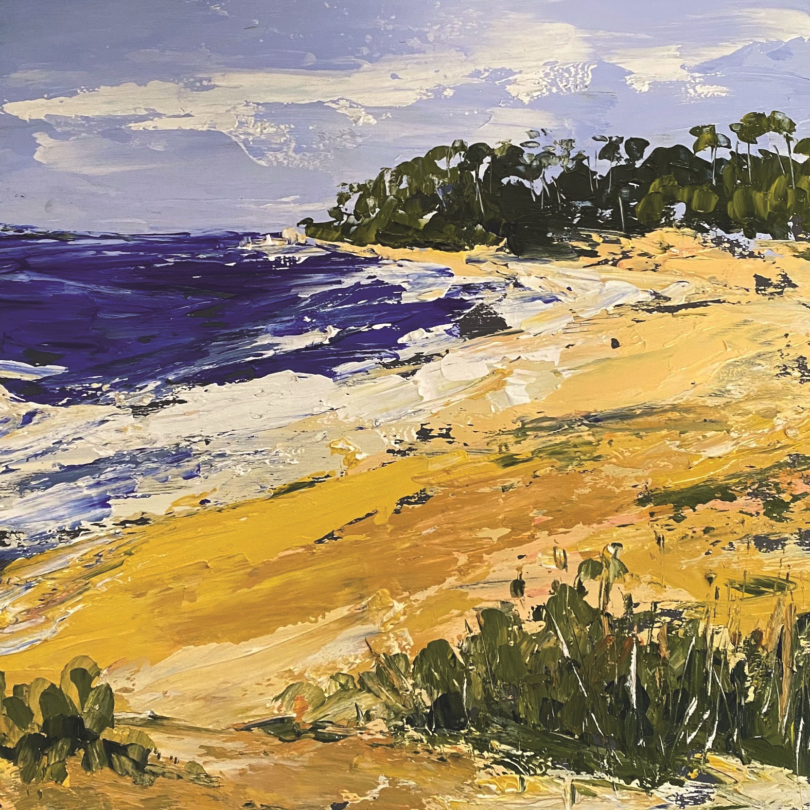 Jacqueline’s morning walks inspire her to paint what she sees, the ever changing landscape affected by the light of the day, weather, clouds, sea, sand and all the colours around her. She works mostly with palette knife. This allows her to create the layers and textures that are evident in the beautiful landscape she lives in.