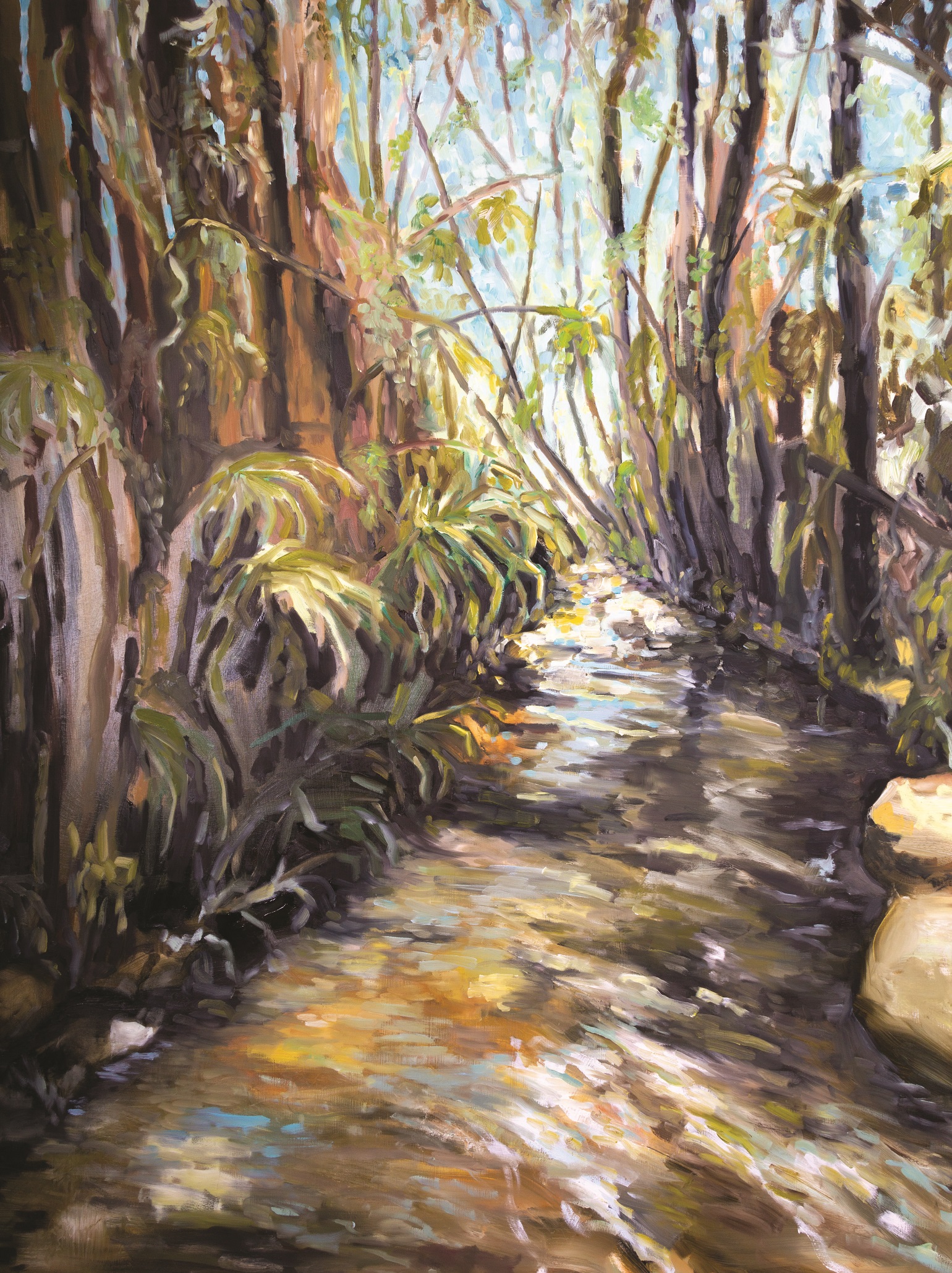Julz’s recent work is based on the Hawkesbury River and its surrounds. Often out in all weather, Julz works towards capturing the essence of the landscape and that particular moment in time. Her works are an expressive piece of the whole process as well as a manifestation which embodies the feeling of actually being there.