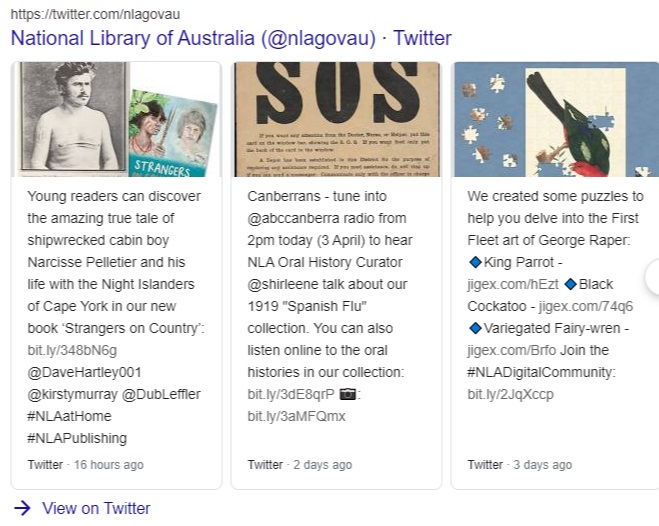 What's more - they're experts at digitising and sharing all maner of materials and Art - think TROVE, the Australian National Bibliographic Database, digitising magazines such as the old RAHS volumes, Art in Australia, and Photography Australia, The Bulletin, PANDORA, Australia's Web Archive, Manuscripts, Interviews, Maps, Old Land Sales lithographs. A collection of Australian online publications, established initially by the National Library of Australia in 1996, and now built in collaboration with nine other Australian libraries and cultural collecting organisations (Pittwater Online News is part of this), the National Library of Australia Catalogue where in you can discover those great Enemark Panoramas and zoom in for details, as well as other great Art, Ephemera, eBooks that are free to read online or download and Daily Updates on what is in their extensive catalogue inviting you to explore more. Recent examples via their Facebook and Twitter posts - this is Australia's BIGGEST ONLINE EXHIBITION of evrything!: