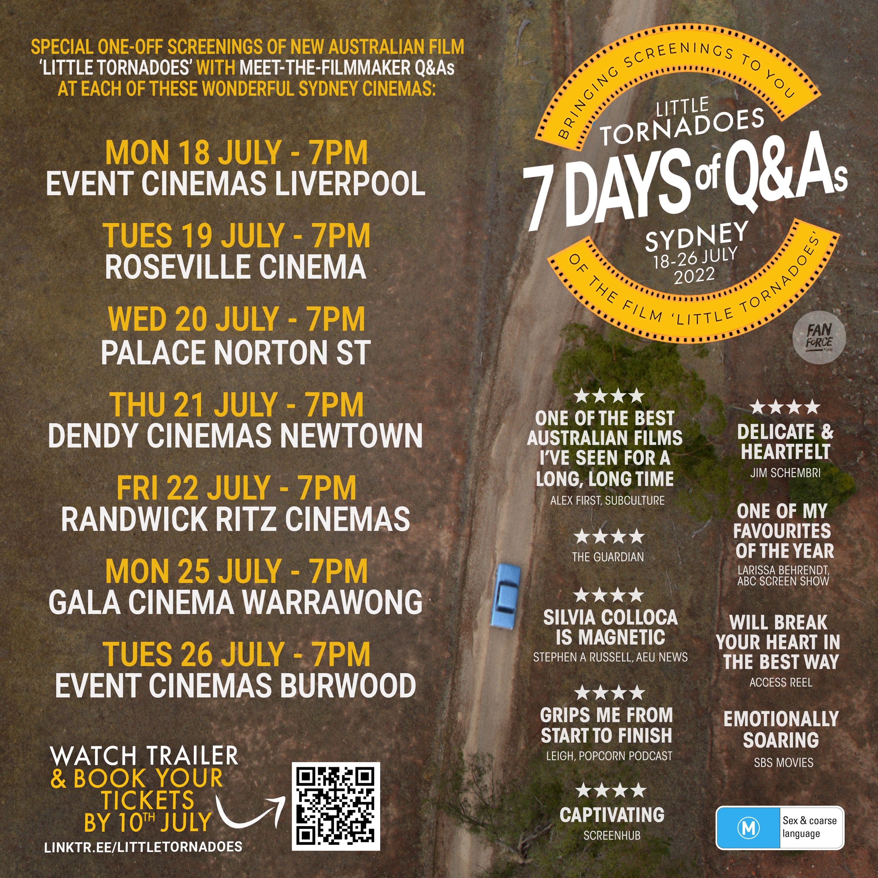Little Tornadoes coming to avalon cinema on july 21 - director series of Q&A screenings in sydney