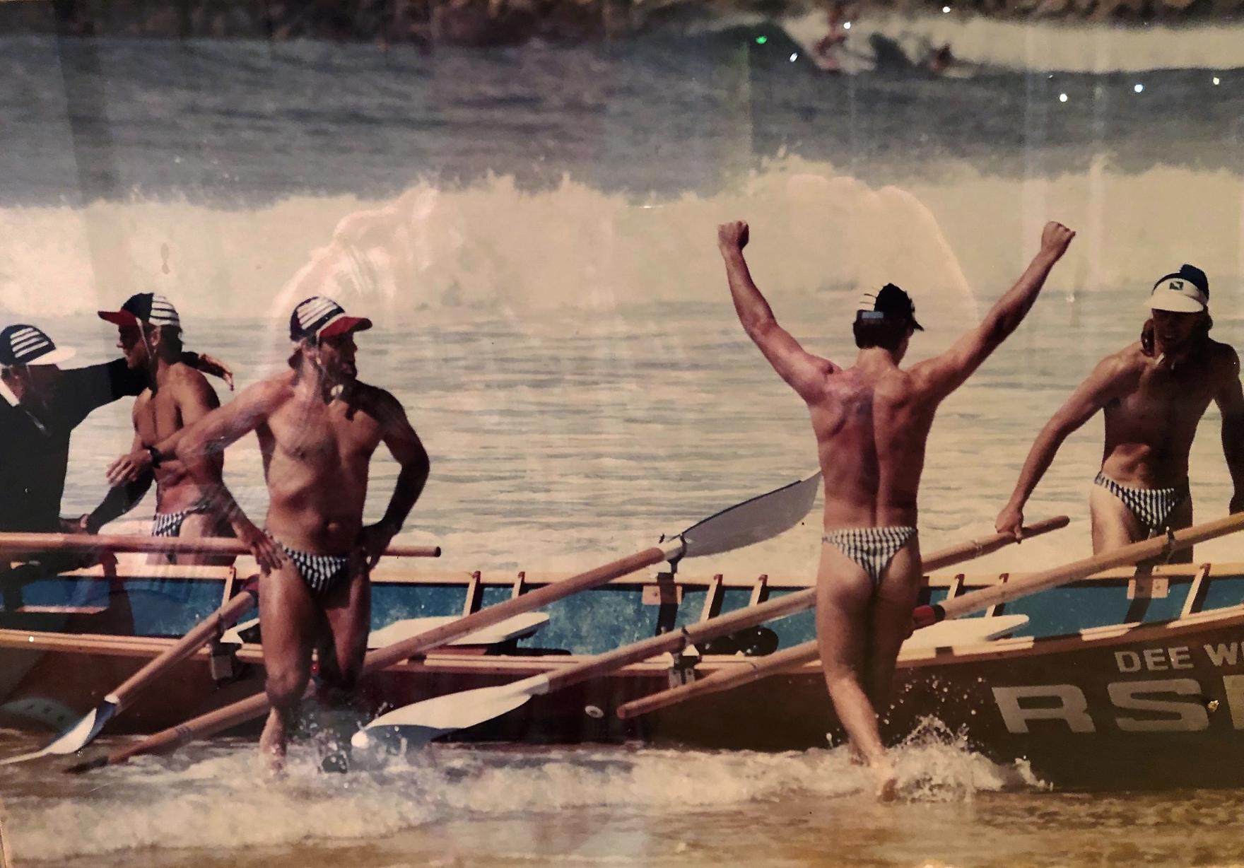 I did my Patrols of course. I started off doing the board paddling and went into a few other competitive sports – I tried R&R for a couple of years, where I won a few medals. Went into boards and then into skis’. Then a few of my mates said we should organise a crew and get into rowing the surf boats. We did it ad-hoc for a year or two and then got a bit more serious. We won the Australian Championship in 1994 and almost won it again the next year in 1995. We had a few good years there.