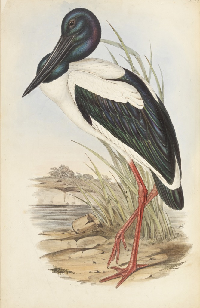 A fine specimen of the male gigantic crane, Mycteria Australis, shot at a lagoon, near Pittwater. Mr. George Lamont, Pittwater.DONATIONS TO THE AUSTRALIAN MUSEUM DURING APRIL, 1855. (1855, May 7). The Sydney Morning Herald (NSW : 1842 - 1954), p. 5. Retrieved from http://nla.gov.au/nla.news-article12968963