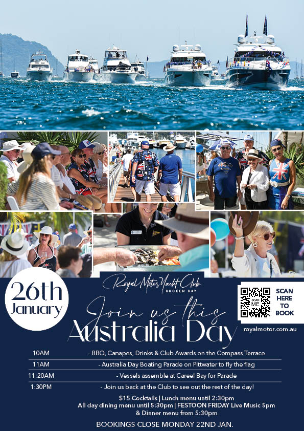 Pittwater will be represented this year at the annual Australia Day Regatta with the Pittwater and 188th edition being conducted by Avalon Sailing Club on Pittwater, the delightful Boating Parade by members of the RMYC Broken Bay at Newport, with prizes for Best Dressed Boat, Captain and Crew, and everyone else who has a boat just getting out on the water to enjoy the best estuary in the world.