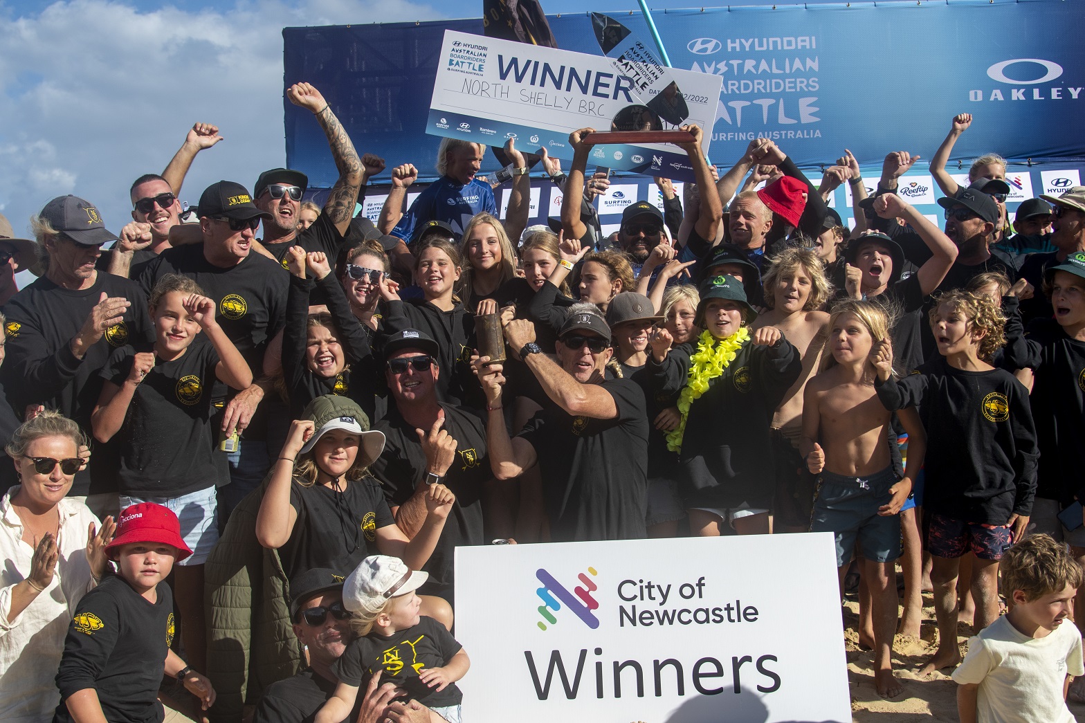 There were scenes of joy on Newcastle Main beach this afternoon as North Shelly Boardriders brought home the bacon after coming so close over the last five years at the Hyundai Australian Boardriders Battle Grand Final.