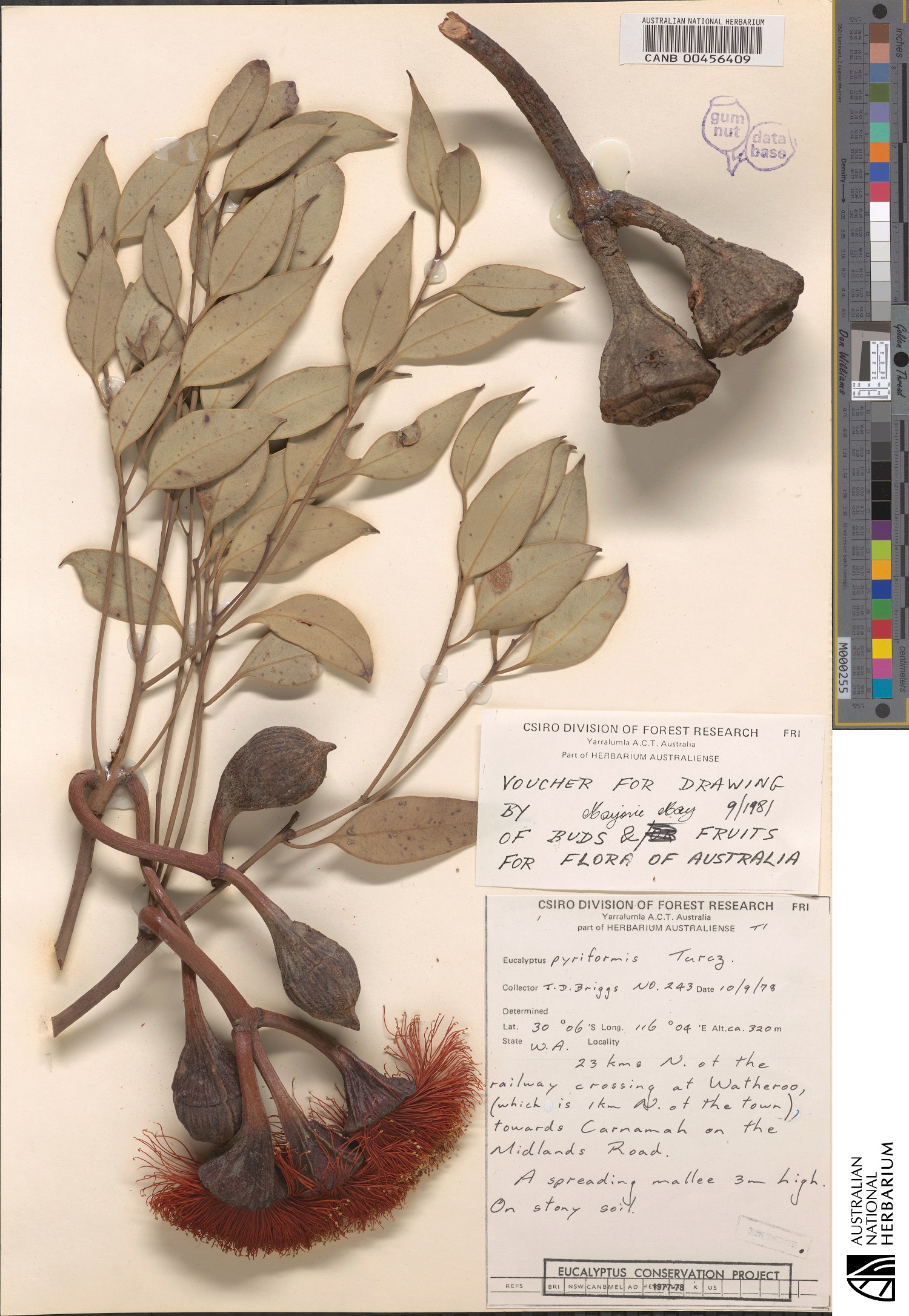 Australian National Herbarium specimen, Eucalyptus pyriformis imaged by Picturae. Image courtesy CSIRO