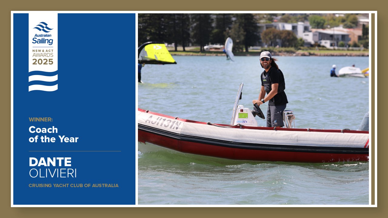 Coach of the Year Award for the 2025 NSW & ACT Sailing Awards went to Dante Olivieri.