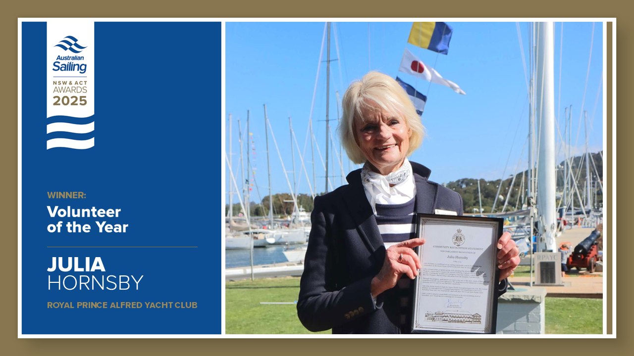 Volunteer of the Year Award for the 2025 NSW & ACT Sailing Awards were named as Julia Hornsby and Ben Howell.