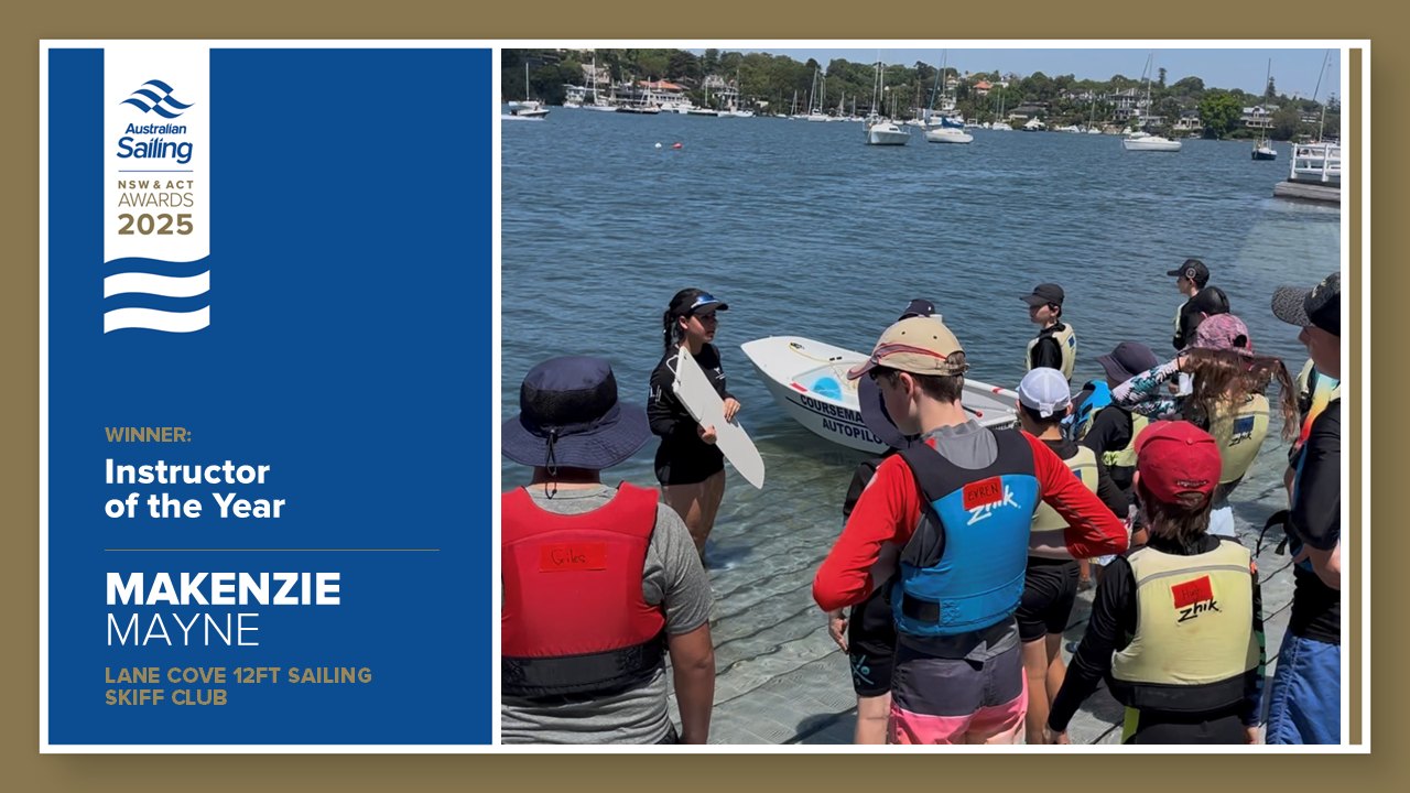 Instructor of the Year Award for the 2025 NSW & ACT Sailing Awards is Makenzie Mayne.