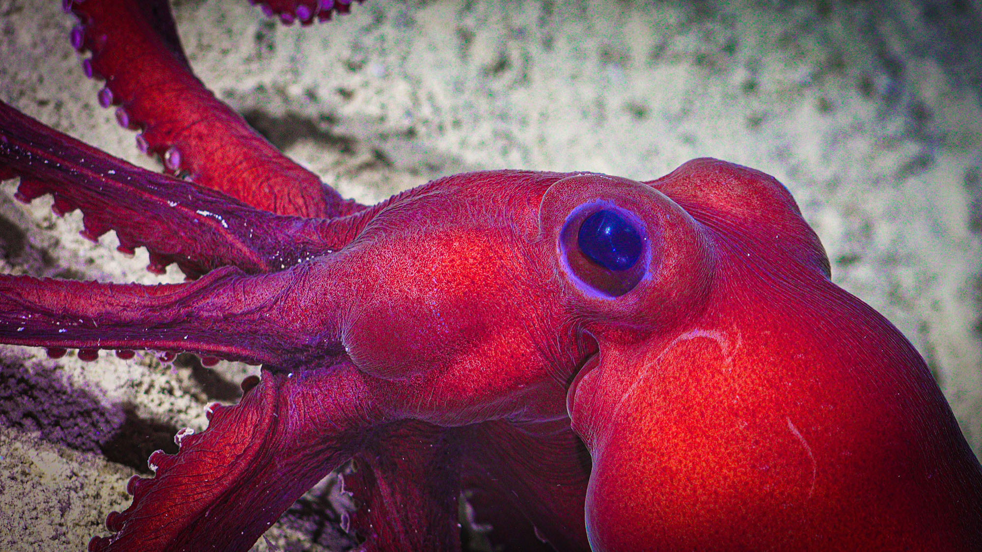 This octopus was observed at nearly 1200 meters depth, during an exploration of the Ribbon Reef Canyons, around 170 km northeast of Cairns, Australia. The Remotely Operated Vehicle was exploring the mid-section of a canyon that connects directly to the shallow waters of the Great Barrier Reef, offshore from Ribbon Reef 5. The research team was using the high resolution cameras and robotic arm of the ROV to observe and collect samples of the geology and seabed organisms.