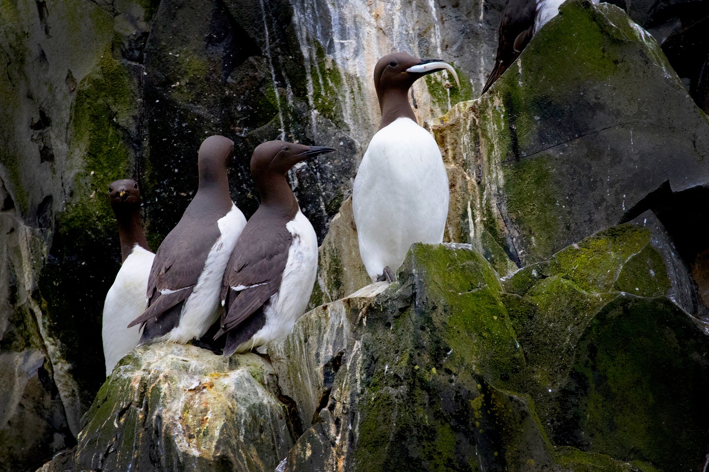 A healthy murre colony overwhelms the senses. Thousands of black-and-white bodies crowd the cliffs, their constant cooing and grumbling creating a wall of sound. Birds move continuously — flying to and from fishing grounds, trading nest duties with mates, or bringing fish to chicks. But during the summers of 2015 and 2016, these typically bustling cliffs fell eerily quiet.