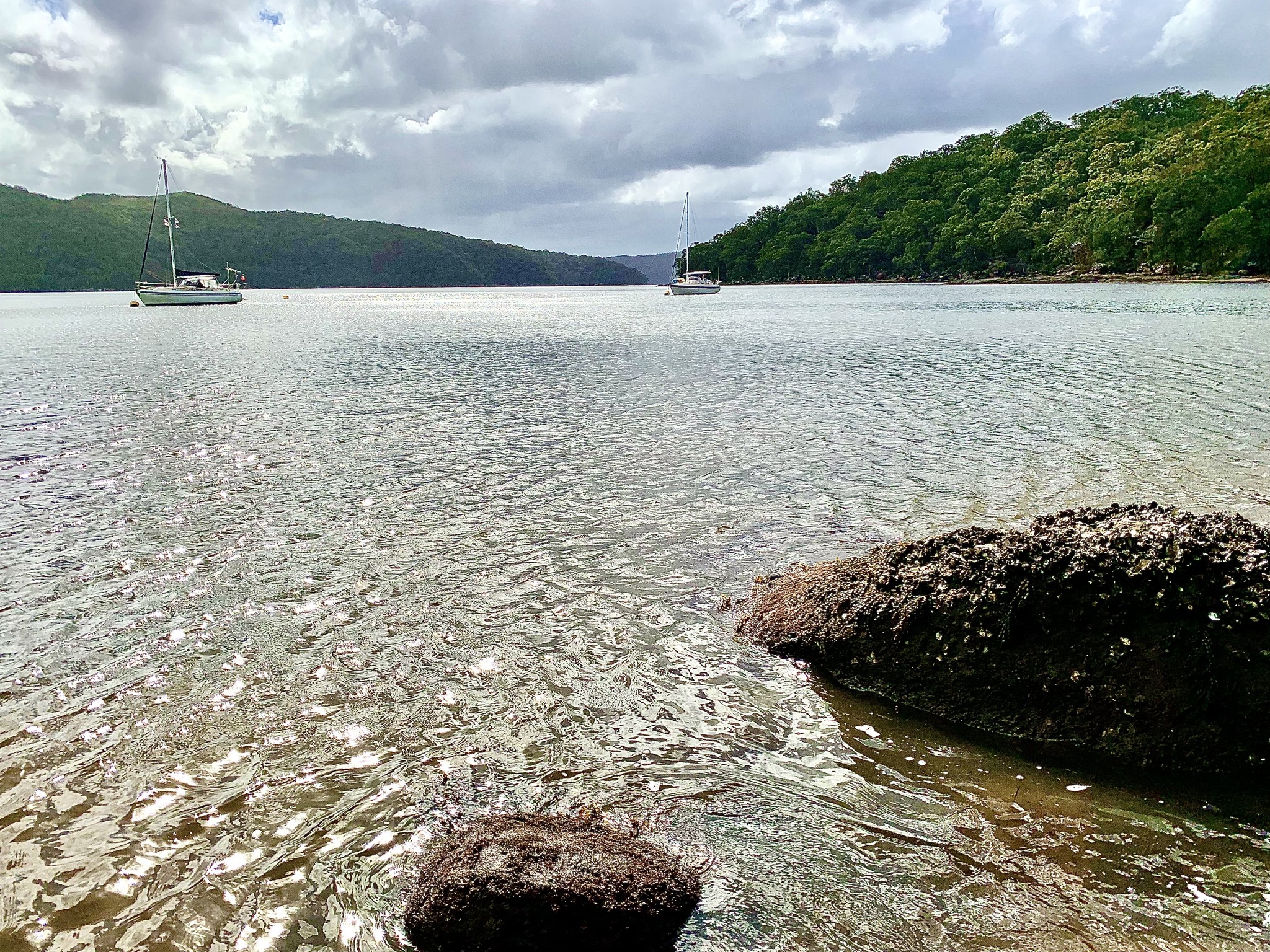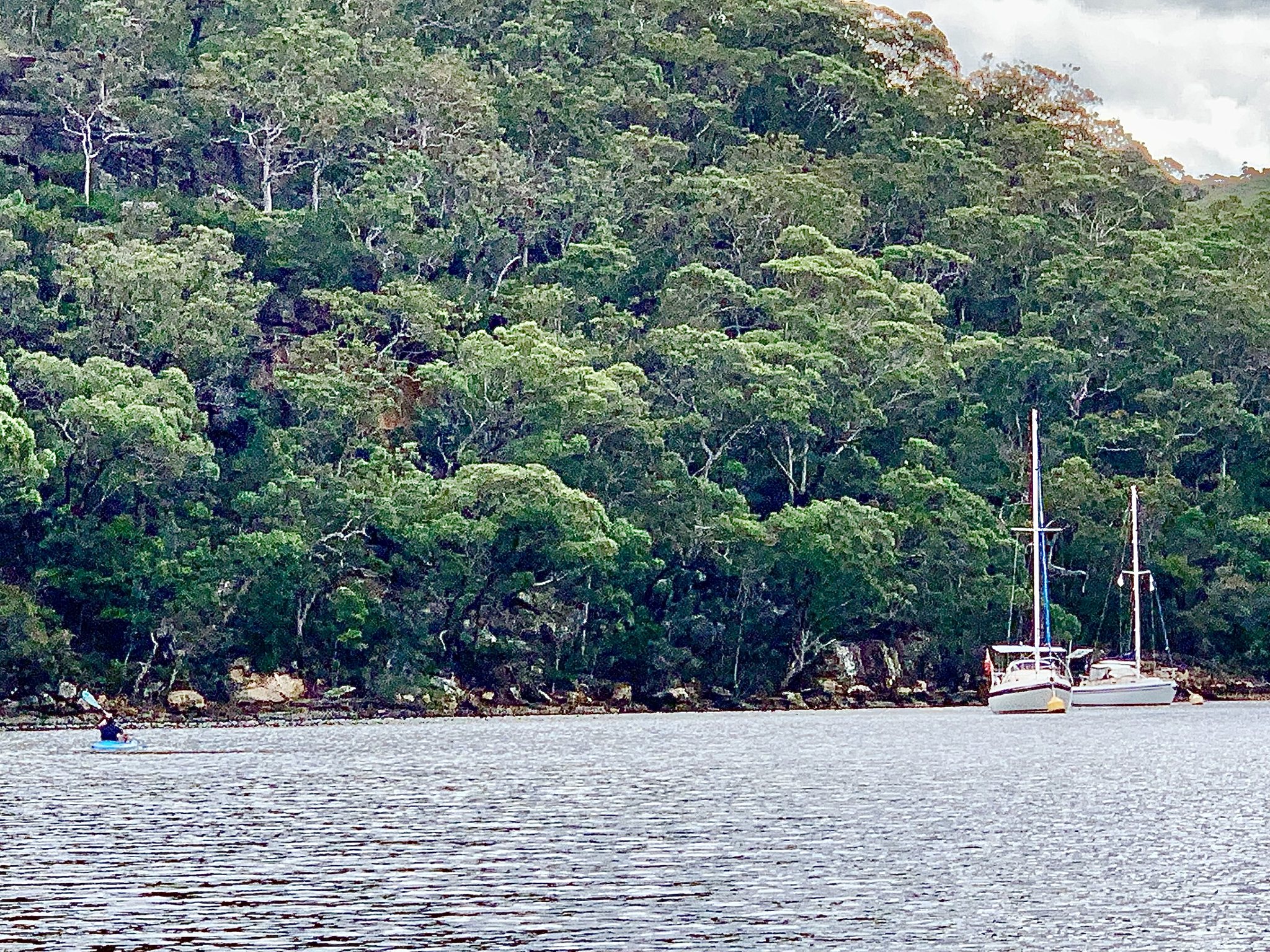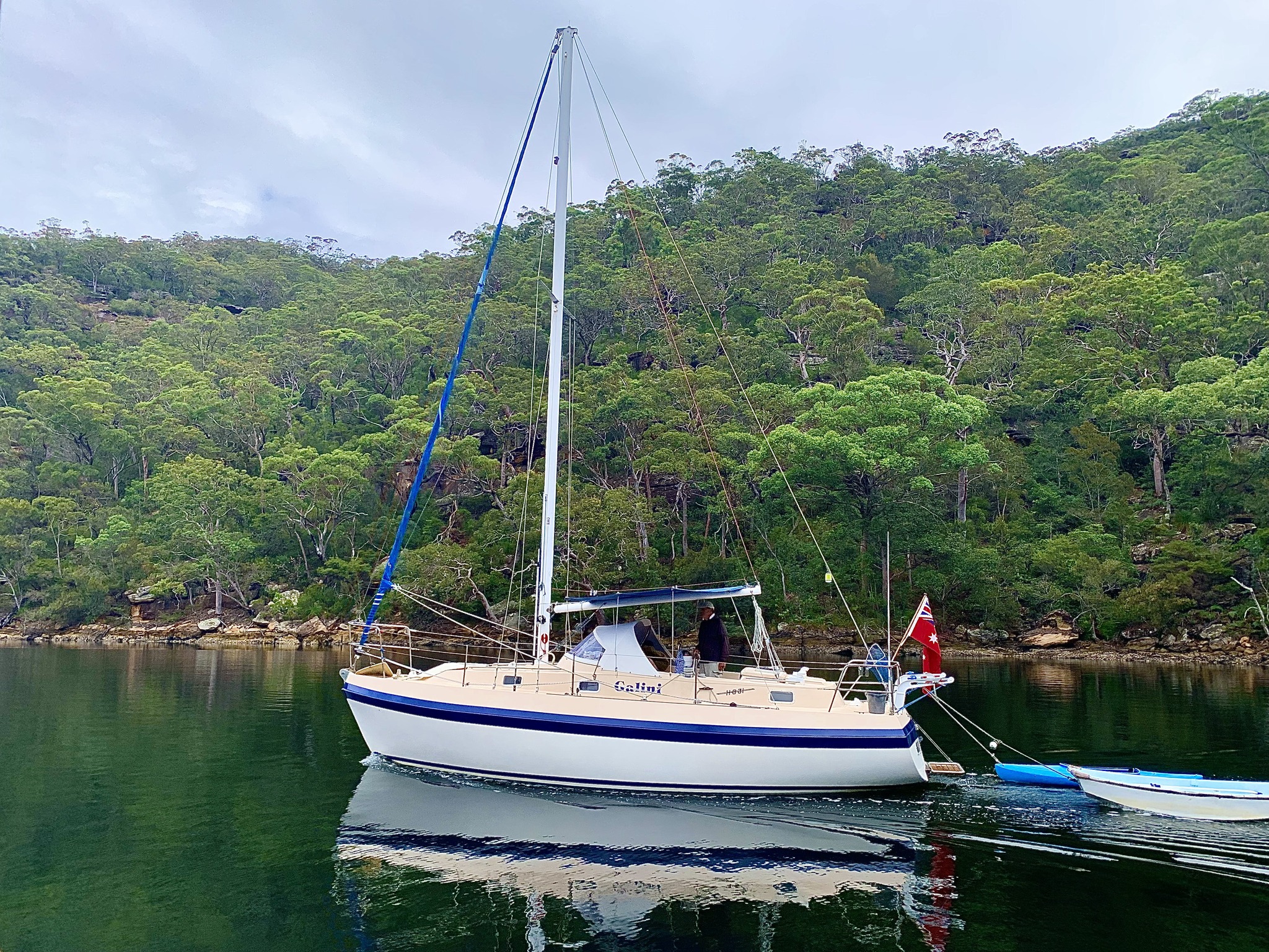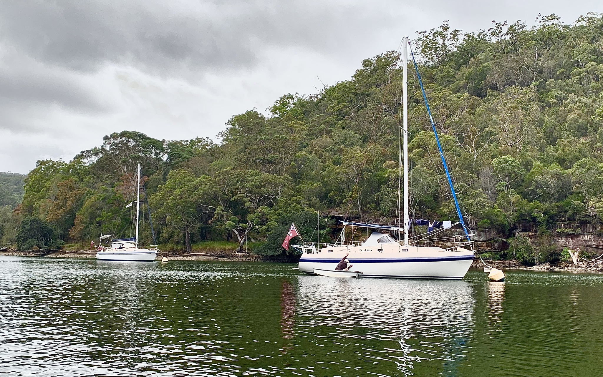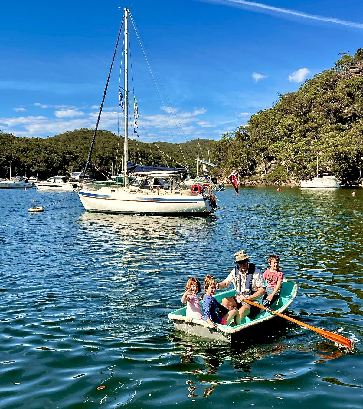 Family afloat near the Cottage Point courtesy mooring which services The Kiosk, a very popular eating spot with its own coffee roasting facility, wonderful!: