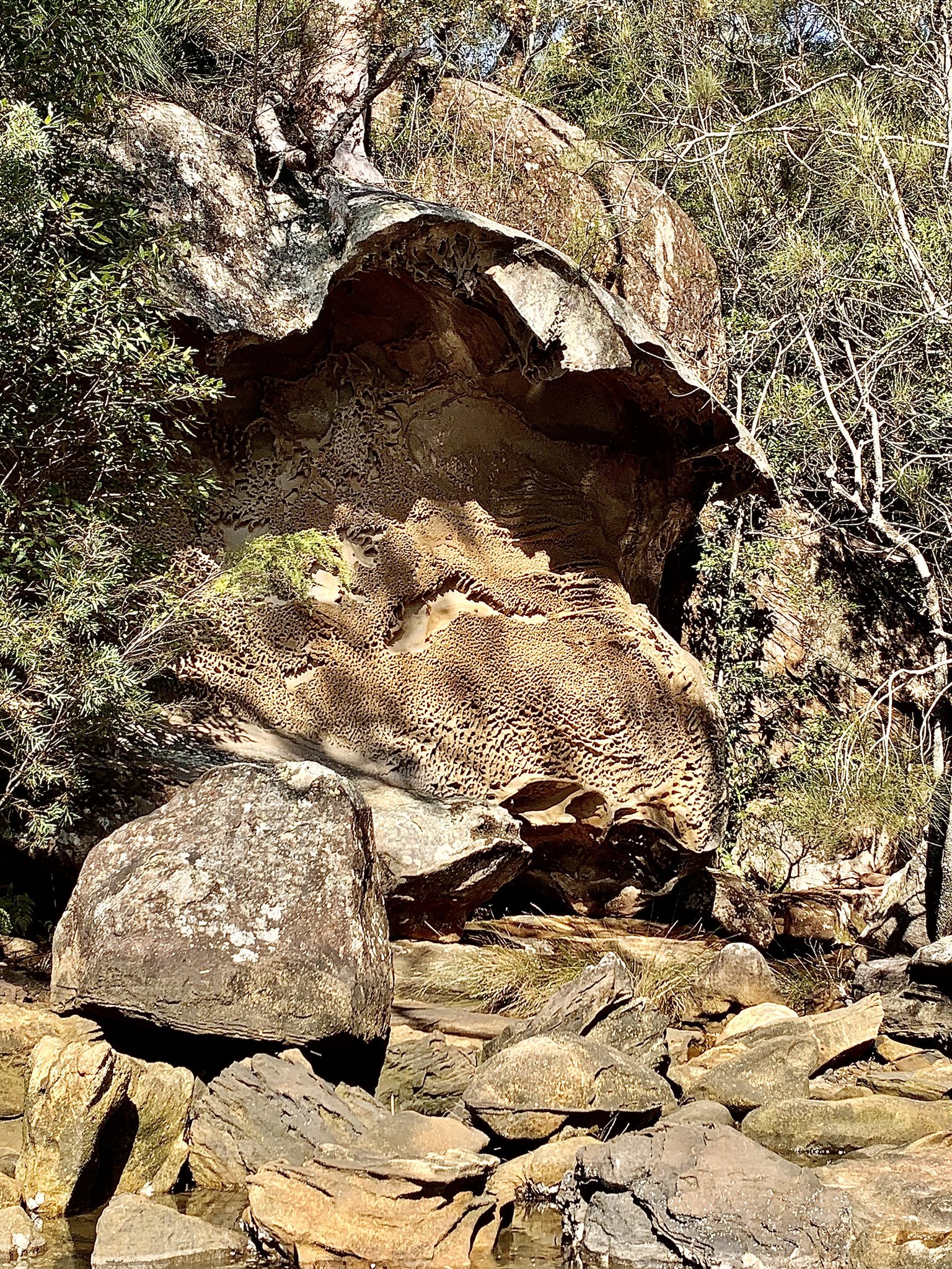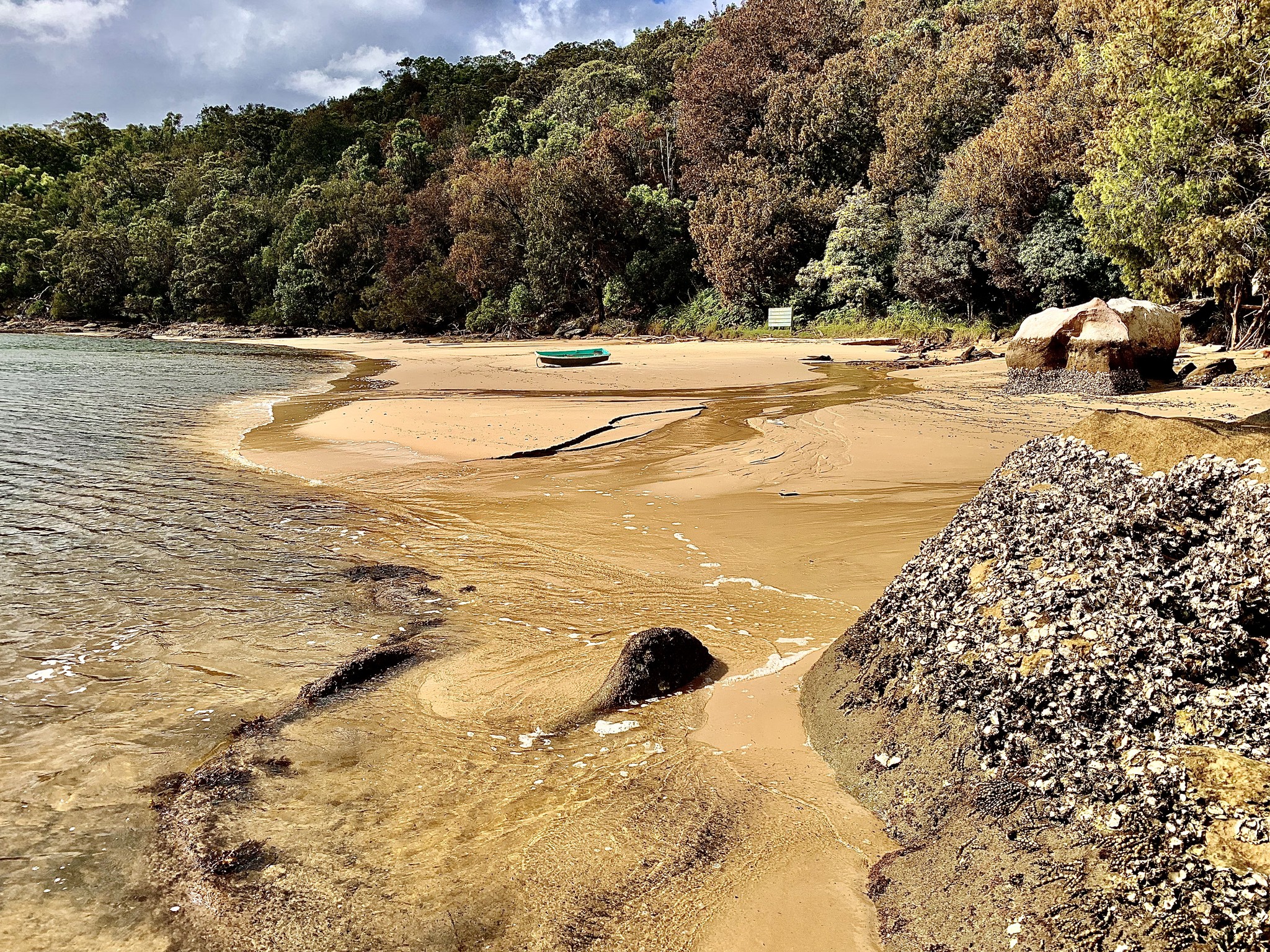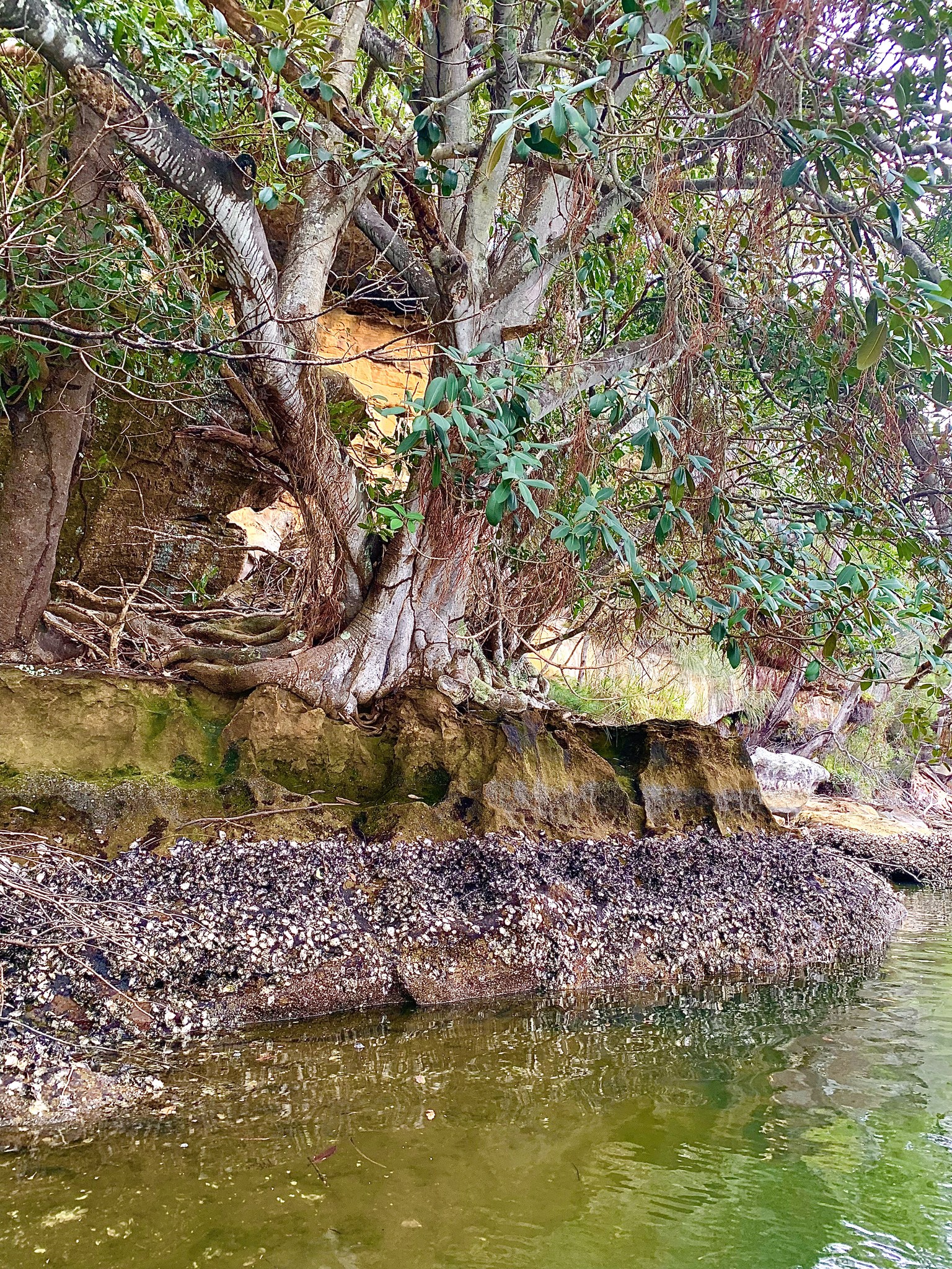 A large Aboriginal midden in Smiths Creek near Snapper Rock Bay: