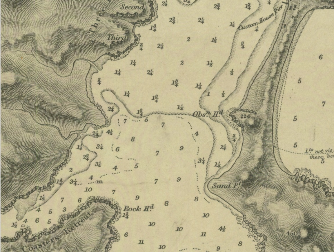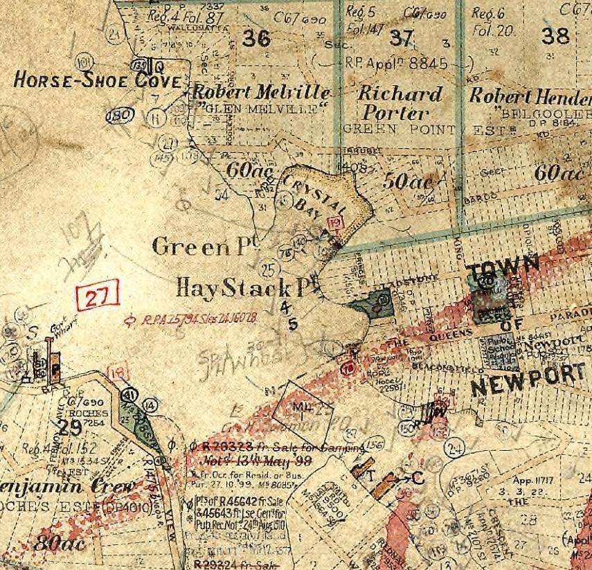 Australia East Coast - New South Wales Broken Bay [cartographic material] London : Great Britain. Hydrographic Office 1869, section showing Observation Point, Item: FL16079143 courtesy State Library of Victoria; and Haystack Point, section from Carto map, dated 1908 - but also shows the Land Grants formalised n 1840 and surveyed for in 1842.