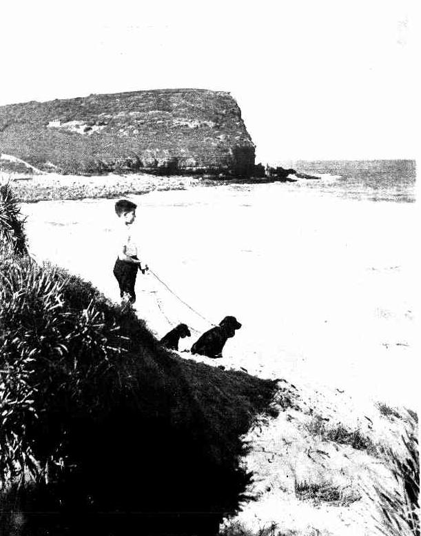 A SMUGGLER'S cave in Sydney? Yes!... St. Michael's Cave at Avalon —an ideal spot for an unusual picnic. Those who own cars can go direct; others, to Manly by ferry and then by motor-bus to Avalon. A scramble down the descending cliff face at North Avalon and a longish stiff walk over huge boulders honey-combed by the ceaseless action of the waves lead eventually to a cave with a wide, gaping entrance. As the picture shows, it is almost a perfect reproduction in silhouette of the outline of Australia. This is not noticeable until you enter its portals and look seawards. Reputed to be the largest coastal cave in New South Wales, it is said to be capable of holding 2000 people. Its full length is about 325ft, tapering to a narrow point and ending in darkness. The highest point from floor to roof is approximately 30ft.
