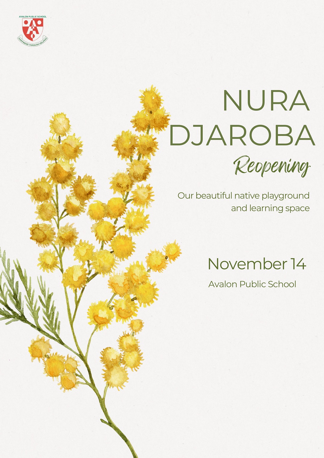 Nura, has a meaning of 'seeing Country' - 'Ngarra Nura' means 'Understanding Country' in the language of the Gadigal peoples. Djaroba is similar to the word Djugurba (pronounced Jook-urr-pa), which means everything concerning the Spirit Time, or Dreamtime, stories. However, in this case it means 'place of laughter' - children's laughter and joy.