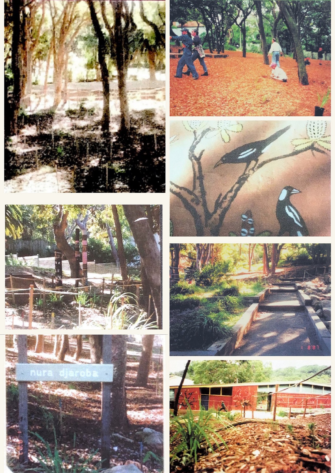 Nura Djaroba (‘place of laughter’) was first envisioned in 1993, when a group of dedicated parents and educators wanted to create something beyond the standard playgrounds of the time. Their dream was to design a space that reflected the surrounding bushland, acknowledged Aboriginal ways of knowing and gave the children a chance to learn through nature.