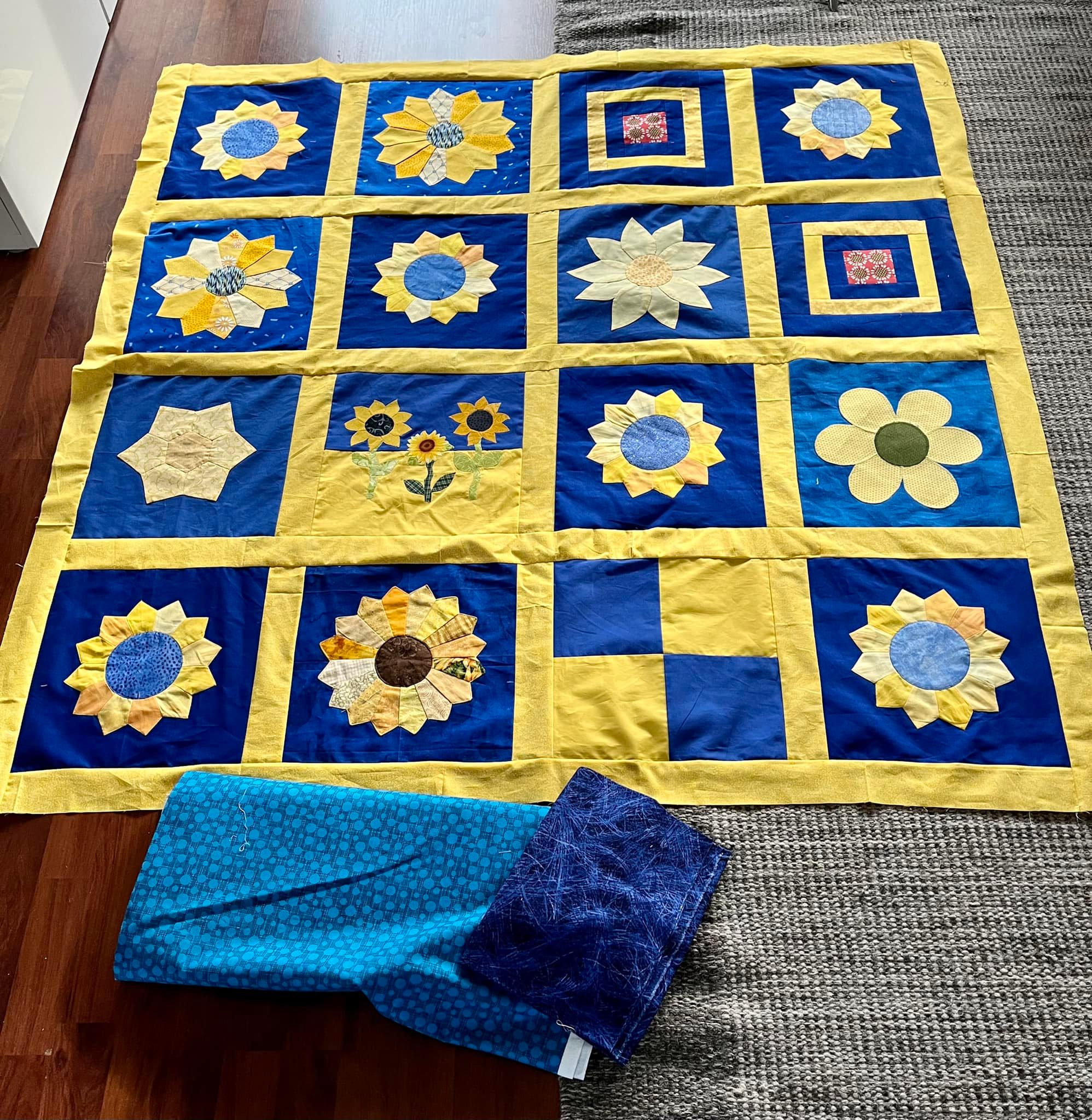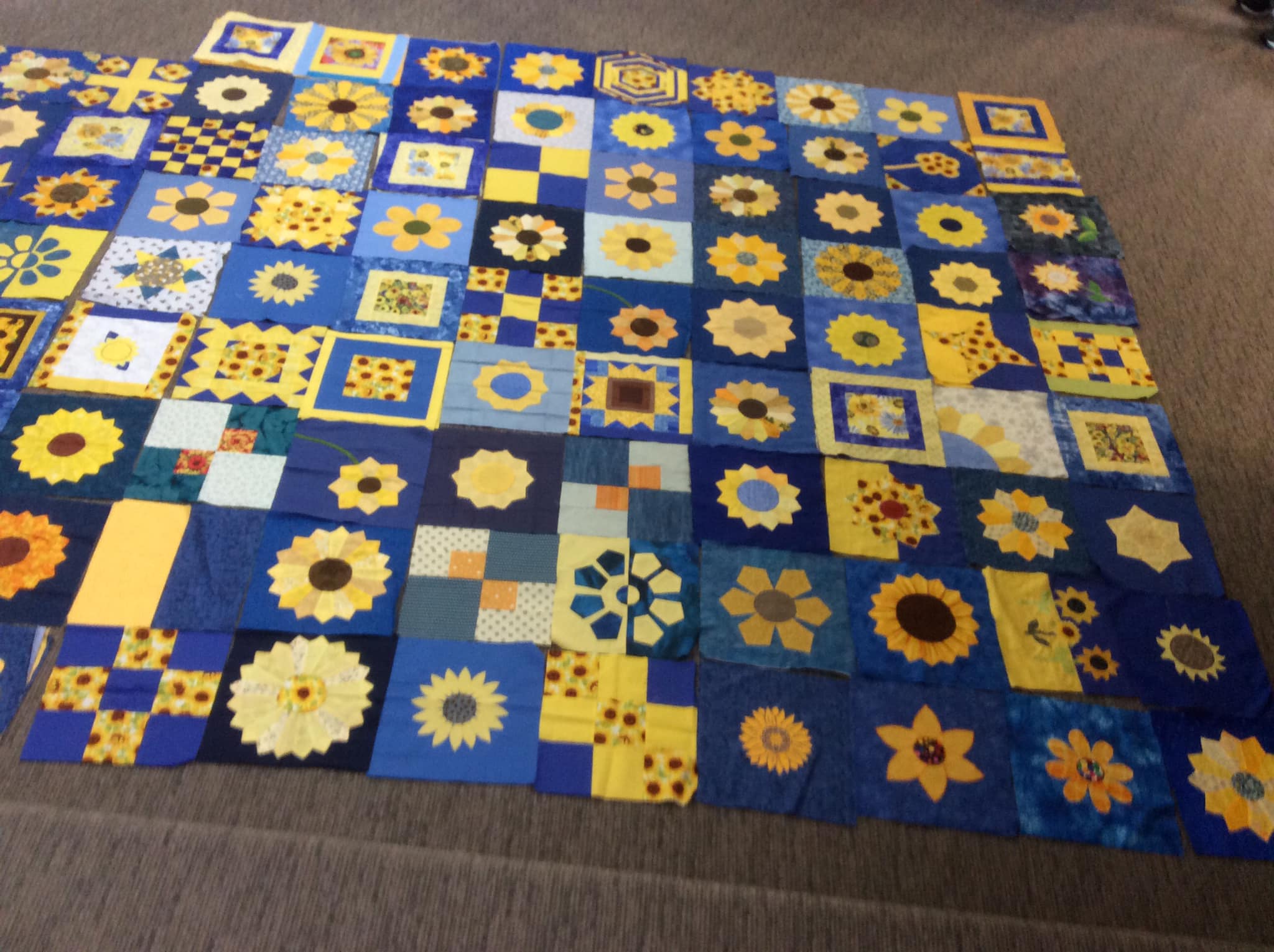 Earlier this year we ran the news that an Avalon Quilters member had a contact with a group of quilters in Norway. These Norwegian ladies were gathering quilt blocks of sunflowers to make into beautiful quilts for Ukrainian refugees. These quilts are all yellow and blue, the colour of the Ukrainian National flag.