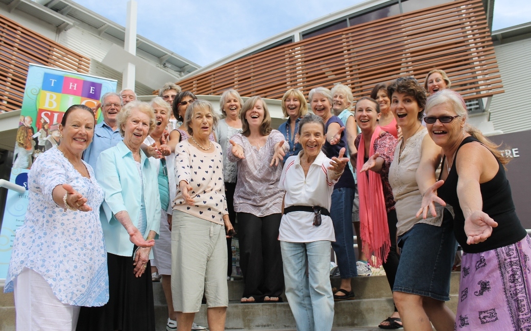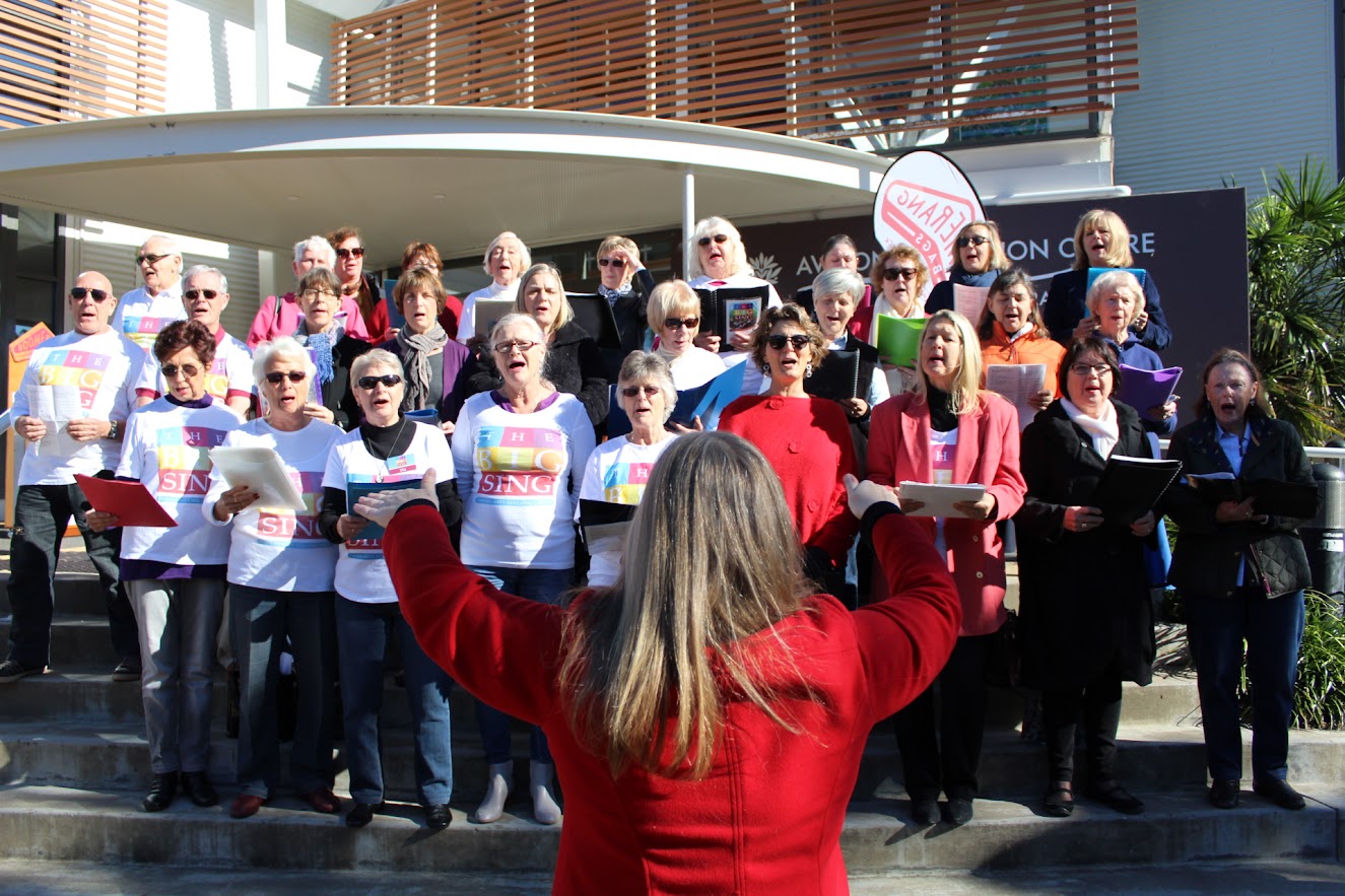 The Big Sing, led by Samantha Shaw, on the steps of Avalon Recreation Centre