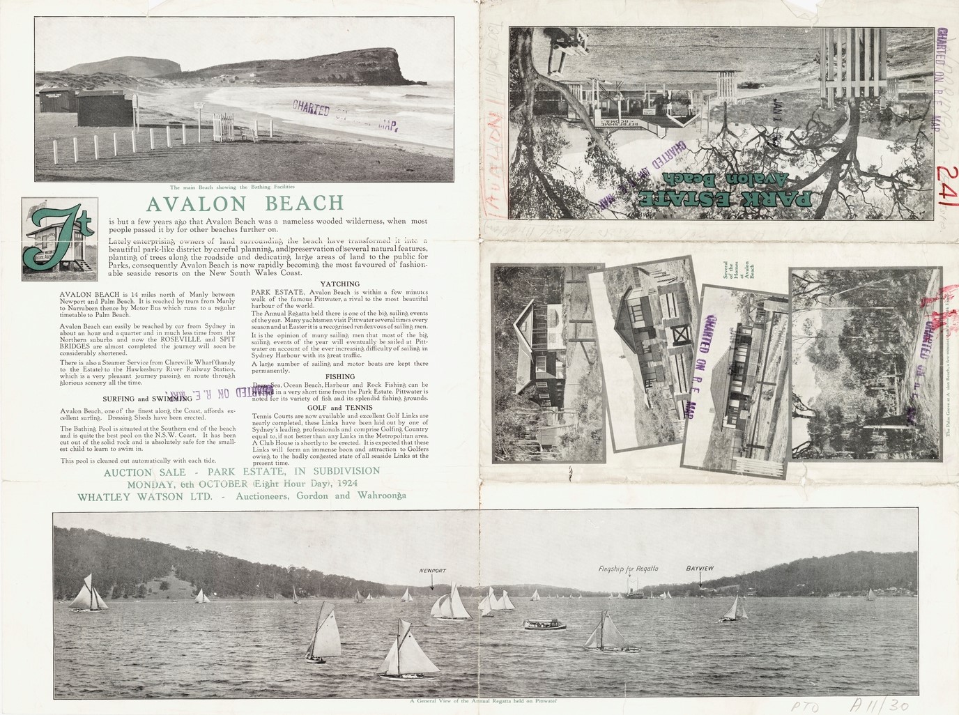 Since the sale of Avalon Beach Estate at Christmas additions and improvements have been effected on the estate. The rock pool baths at the southern end of the beach have been extended 18ft., and are now 57ft. long, with a smooth -bottom. Ladies' dressing sheds have been erected Immediately at the roar, on a spot once occupied by a jumble of rocks, and a general store and refreshment room of original design has been built close to the beach. Several landowners are already building homes on their lots. A new, wide road has been constructed, giving the land direct access to the beach, and at the side of all the roads, trees, of eight different varieties, chosen as specially suitable for the land and atmosphere, have been planted: One of these is the Illawarra Flame Tree, which carries blooms of fire color. IMPROVING AVALON (1922, March 22). The Sun (Sydney, NSW : 1910 - 1954), p. 10 (FINAL RACING). Retrieved from http://nla.gov.au/nla.news-article225222882