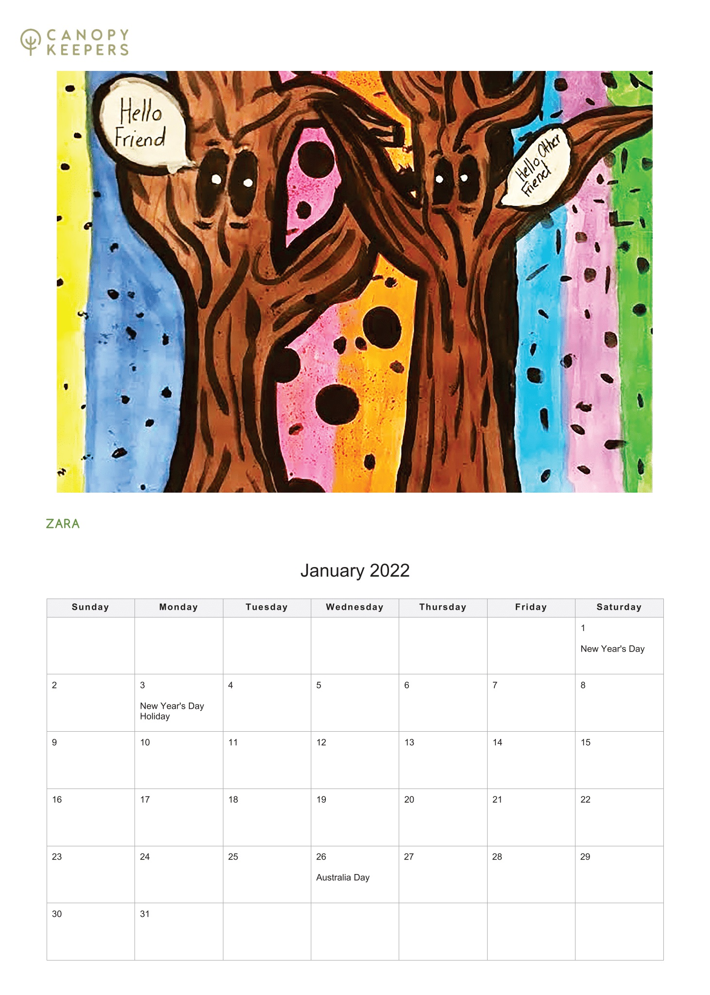 The Canopy Keepers 2022 Calendar is on sale at the Beachside Bookshop in Avalon. The artworks and quotes were produced by local primary school students, who responded to the challenge to represent 'the hidden life of trees' - during lockdown.