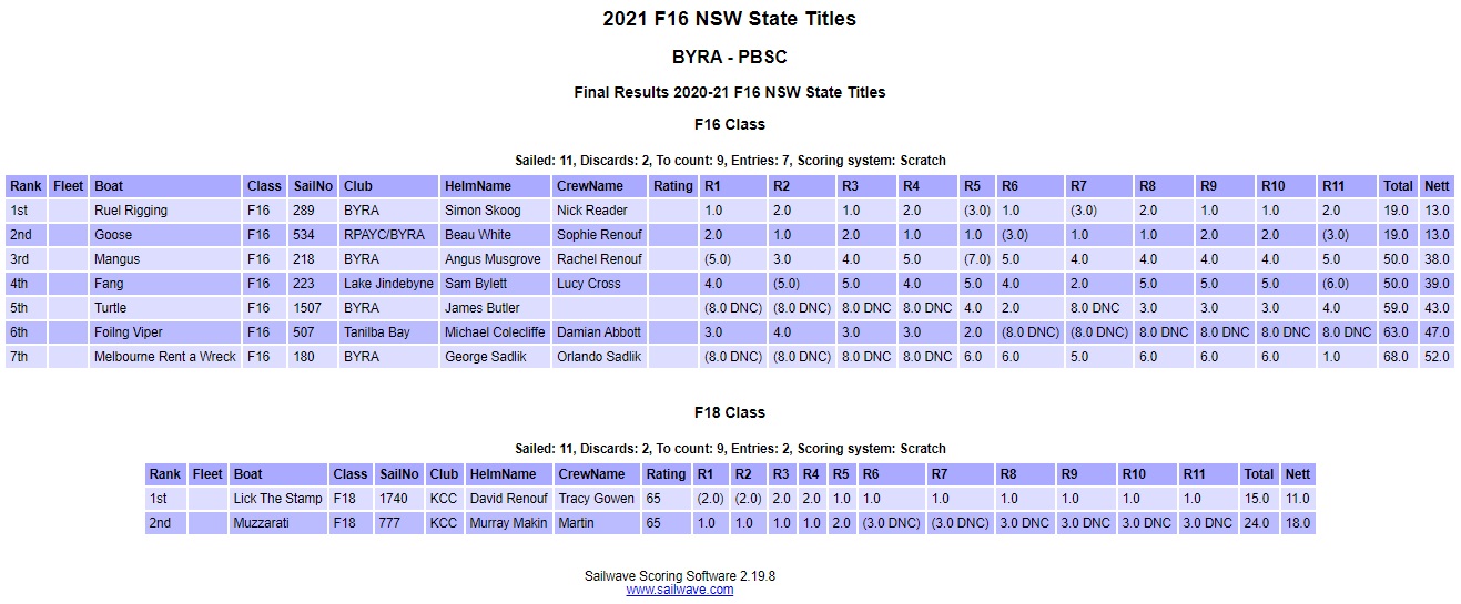 Two of Pittwater's great family focused clubs, Bayview Yacht Racing Association (BYRA) and Palm Beach Sailing Club (PBSC) joined to host F16 NSW State Titles on 26-28th February 2021.