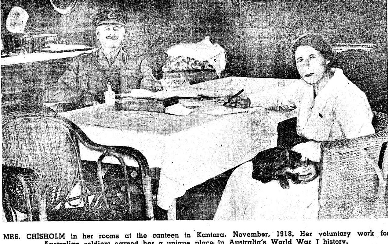 MRS. CHISHOLM in her rooms at the canteen in Kantara, November, 1918. Her voluntary work for Australian soldiers earned her a unique place in Australia's World War I history.