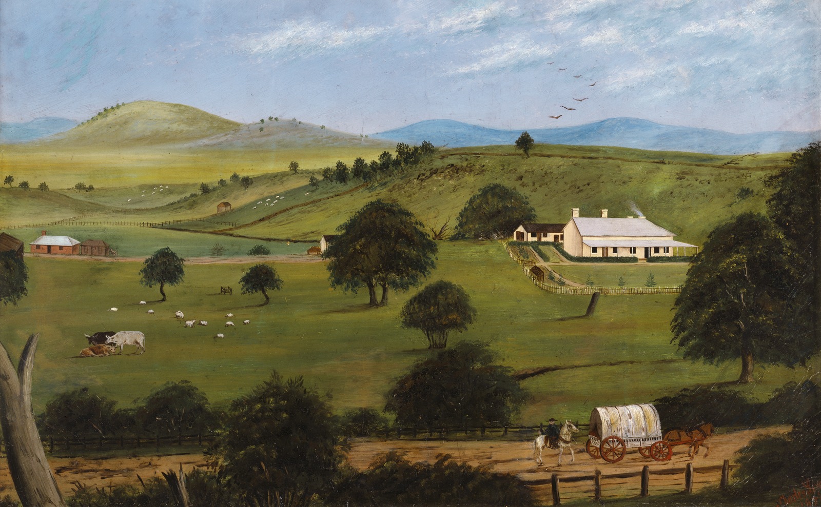Unidentified homestead associated with Matthew Hamilton Baird, possibly Glenaire Station. Author / Creator: Lawry, Charles Hamilton, b. 1861, artist.. Date 1876. Courtesy State Library of Victoria