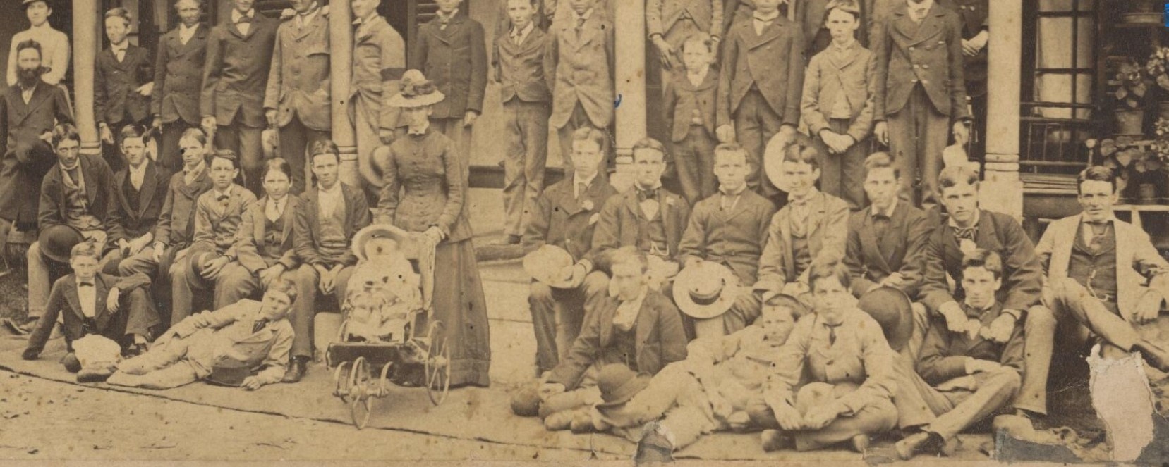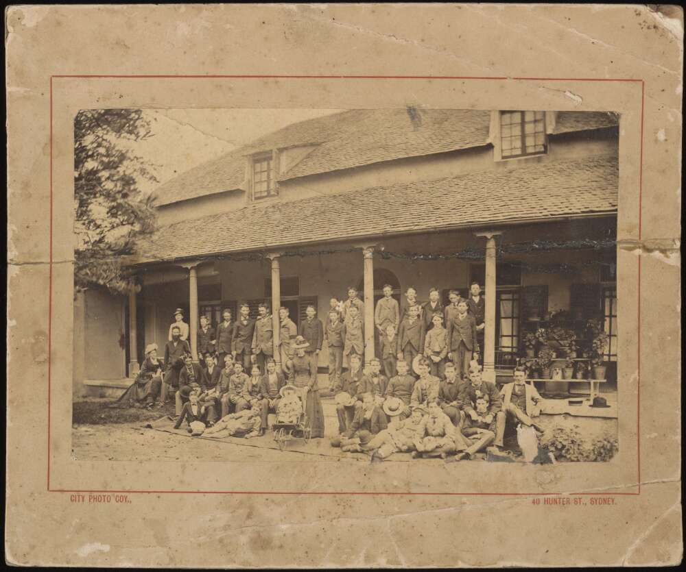 City Photo Company photographer. (). School boys and teachers outside Calder House boys' school, Redfern, Sydney, 1876 - and enlarged section from Retrieved from http://nla.gov.au/nla.obj-153489793