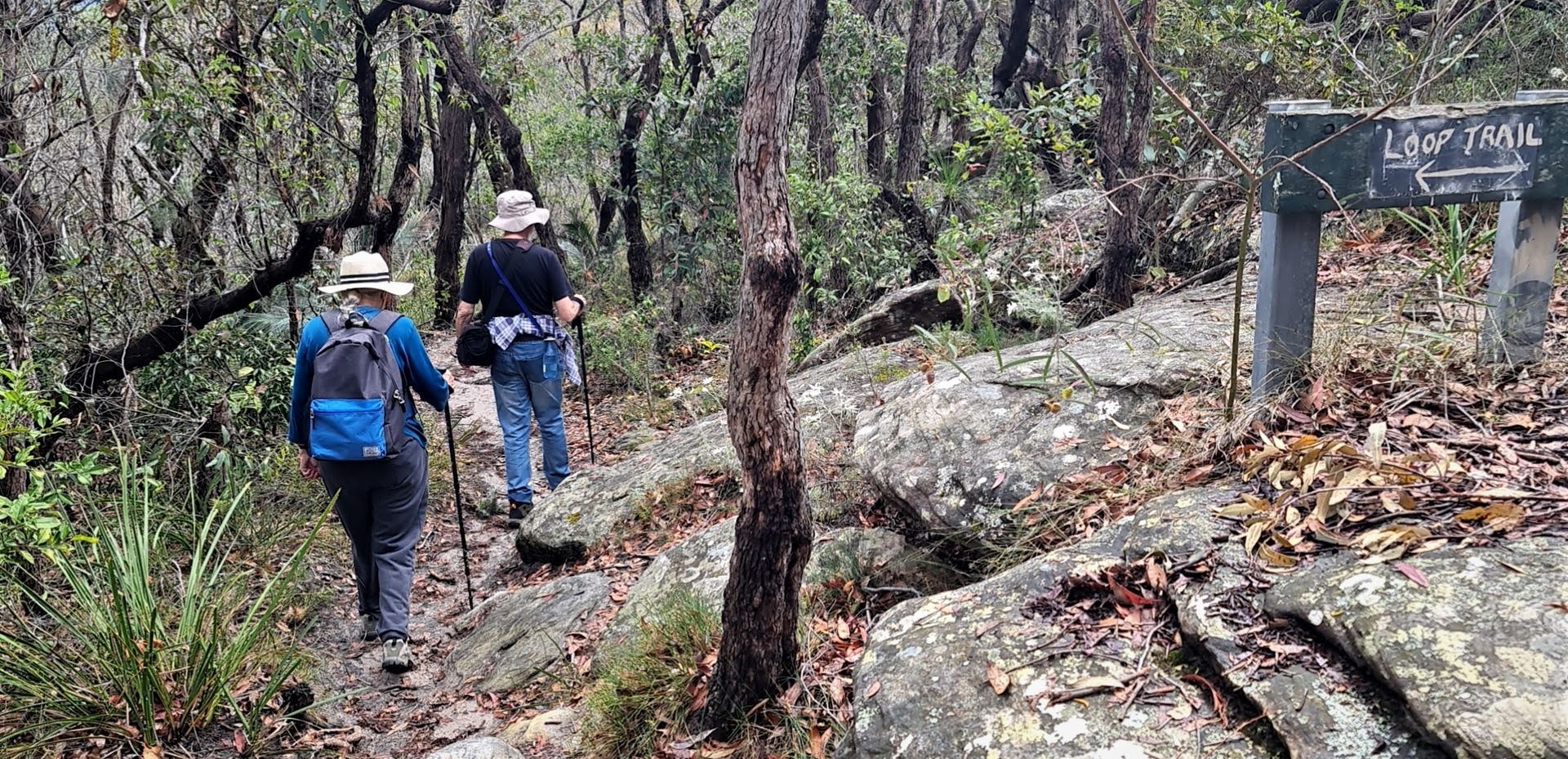 Nine years after Pittwater Online News staff first did this walk, which includes a Bangalley Headland Self Guided Walk pamphlet at (746kb – PDF), Kevin and Glenys Murray and Joe Mills have returned to provide a pictorial for those of us who may not be able to access the area due to the steep incline at the start.