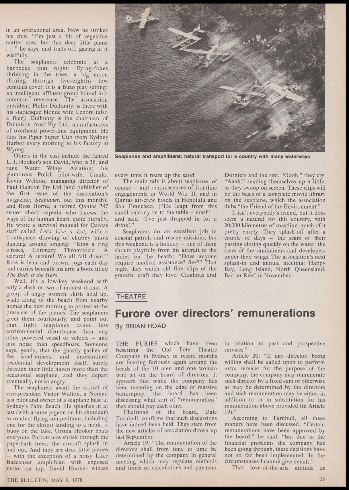 Aquatic Airways operates two floatplanes every day of the week from be base at Pittwater and provides service to numerous inaccessible places along the coast. We have had no complaints in over two years. I wonder if anybody would like to comment, to this paper or direct to Aquatic Airways, Palm Beach. This letter is from me personally and I'd like to thank those of you who flew with us and at the same time apologise if I upset anyone. ROSS HORNE, (Pilot).