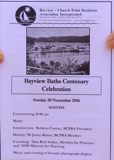 ON Sunday November 20th the Bayview-Church Point Residents Association hosted a Centenary Celebration of the Bayview Baths on site.