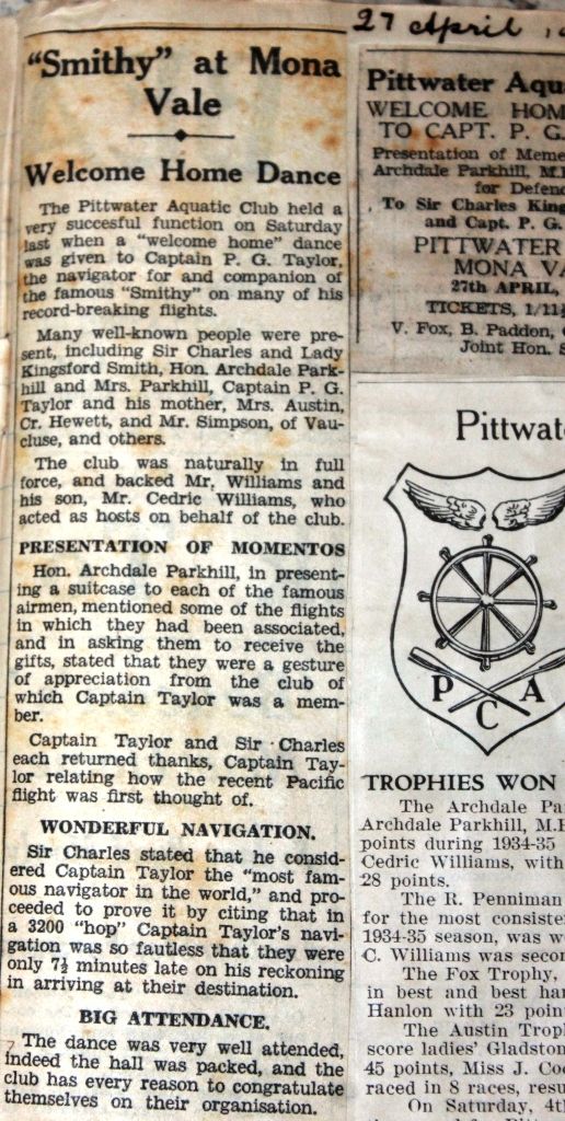 Larger PAC hall social functions were held at the Masonic Hall at Collaroy, and when the community was welcoming home airman Patrick Gordon Taylor, an event was held at Mona Vale’s hall: