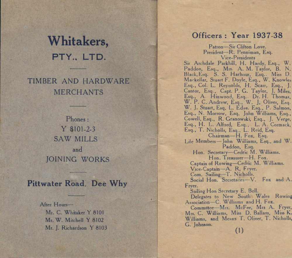 The official opening took place on Monday 4th of October 1937 and was conducted by Pittwater Aquatic Club Patron Sir Clifton Love, manufacturer and businessman, who also spent Christmas Holidays in Pittwater aboard his luxury cruiser, Spindrift.