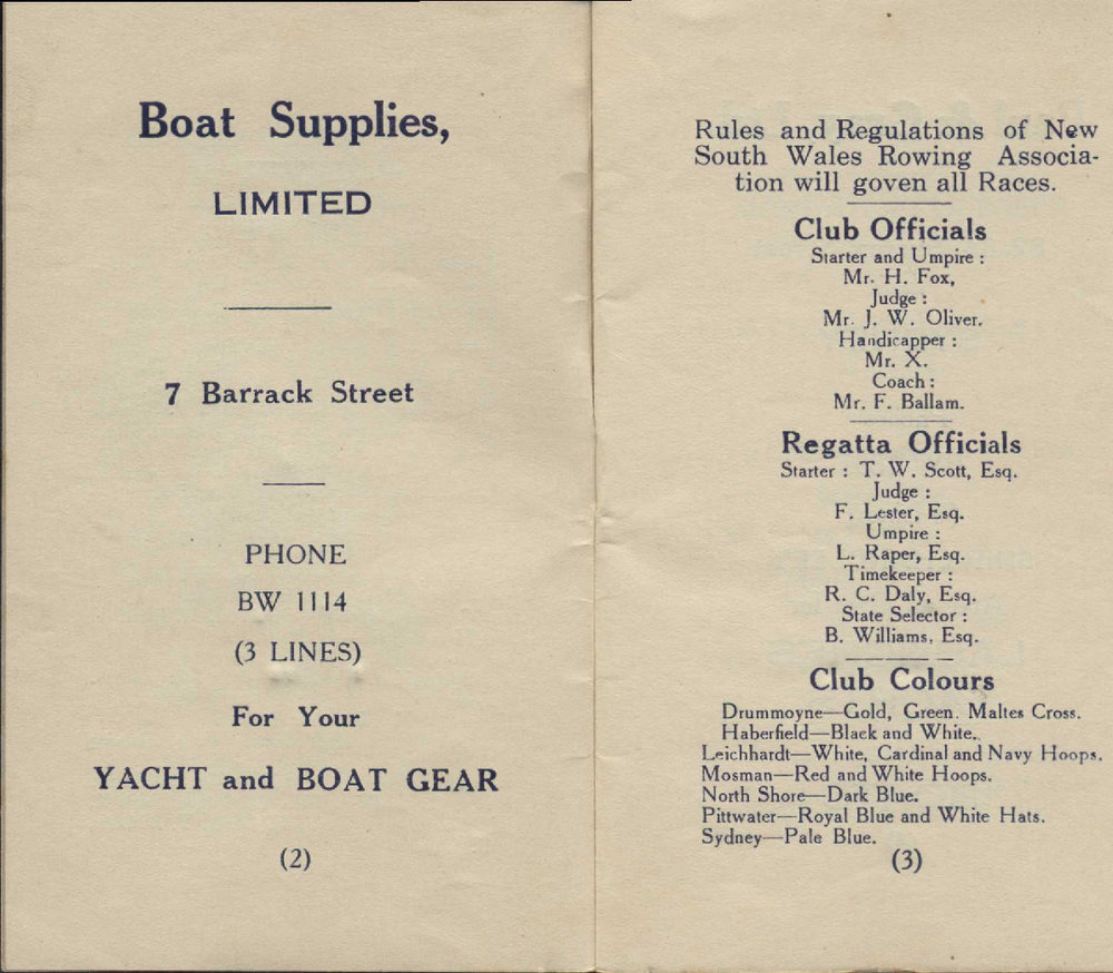 The Pittwater Aquatic Club’s first regatta under the control of the New South Wales Rowing Association will be held at Bayview on Monday. The club is now affiliated and for Its first main series will enter crews In four oar and sculling races only. It has secured Mr F Ballan as coach. He is an ex member of Drummoyne Rowing Club. The first crew heavyweight maiden fours comprised of the club’s scullers N Fox V Fox A Fryer and C Williams. The second crew are men from Deewhy F Moore J Trim R Bonser and M Moore.