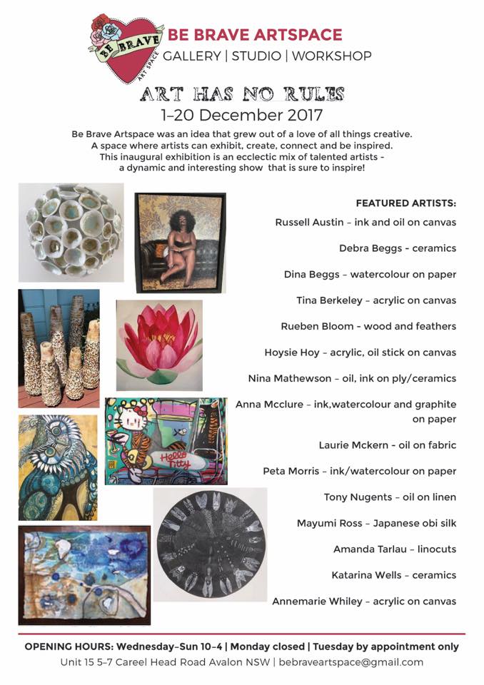 Be Brave Artspace is a new Gallery and Studio in Avalon showcasing talented artists and inspiring those in the community who share a passion for colour, form and creativity.