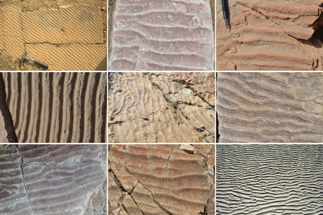Geologists look to ancient sand ripples for clues to the environmental conditions in which they formed. For instance, the spacing between ripples is proportional to the depth of the water and the size of the waves that molded the underlying ripples.