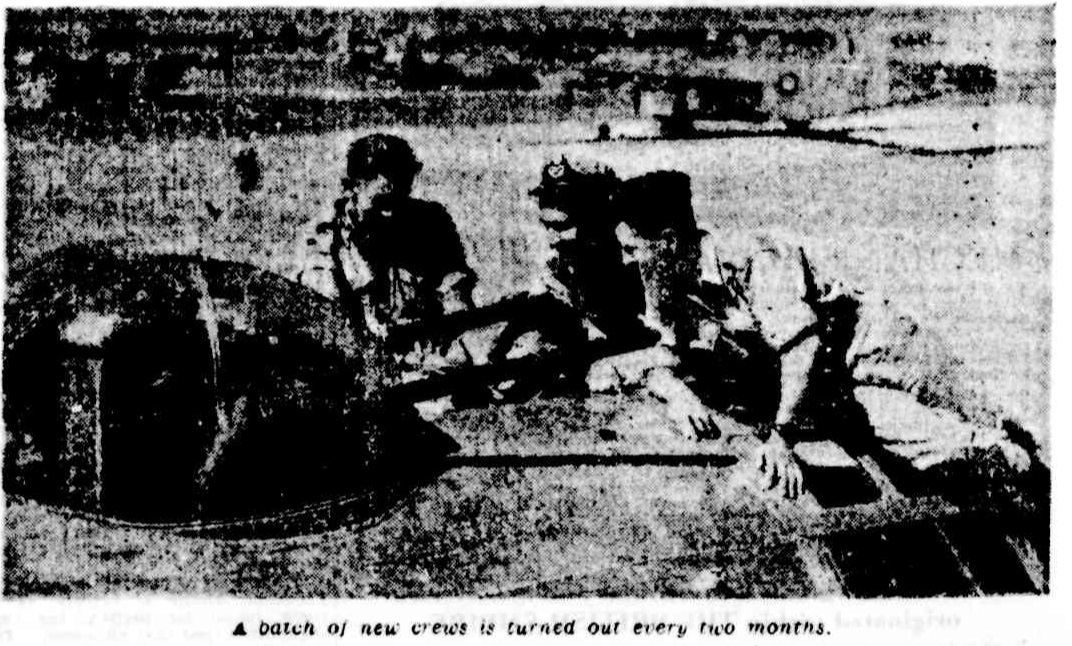 A batch of new crews is turned out every two months. Tocumwal has over 50 giant Liberators for training alone.