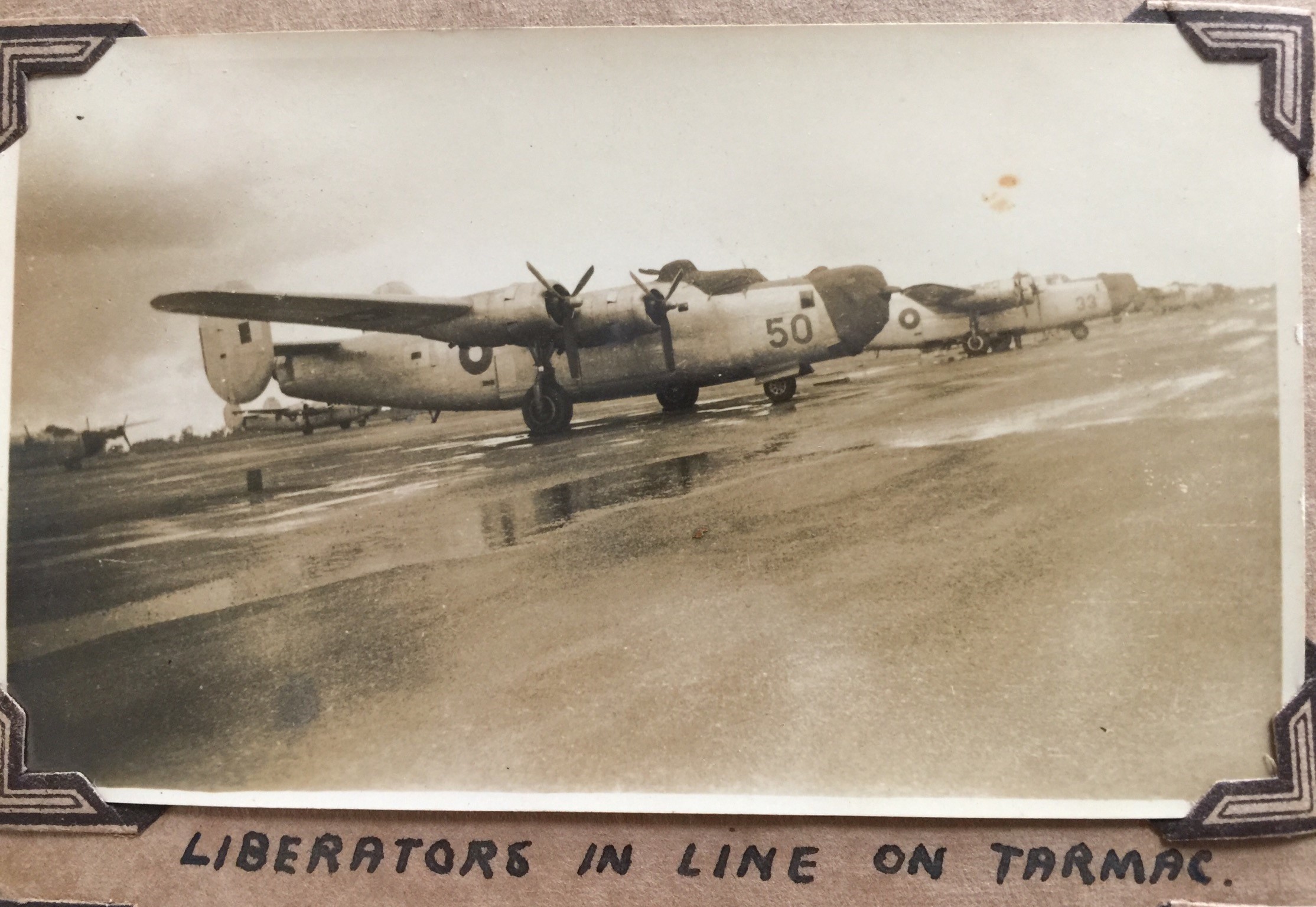 Some notable memories I have; we had a special base visit by Gracie Fields and I was dobbed in to sing for her, regrettably or thankfully, I only knew one song, “Annie Laurie”. Our first three B-24s to see action were set on fire by sabotage in their hangars. I helped service General Blamey’s B-24 which was fitted with arm chairs.