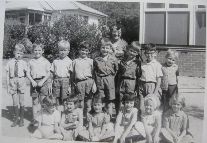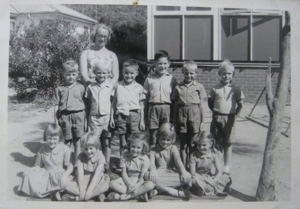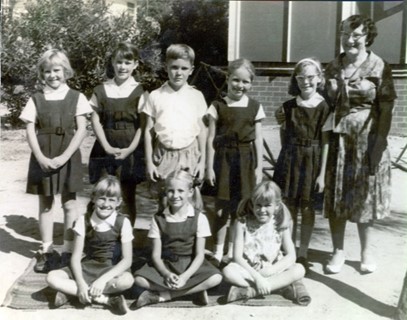 Mrs Drabwell with First Grade students. From left – Christopher Capel, John Buchanan, Mark Culverson, Geoffrey Fisher, Stephen Michelson, Grant Dawkins; Front row – Robyn Armsworth, Kerry Wardle, Lisa Culverson, Christine Shulz, Susan Light.