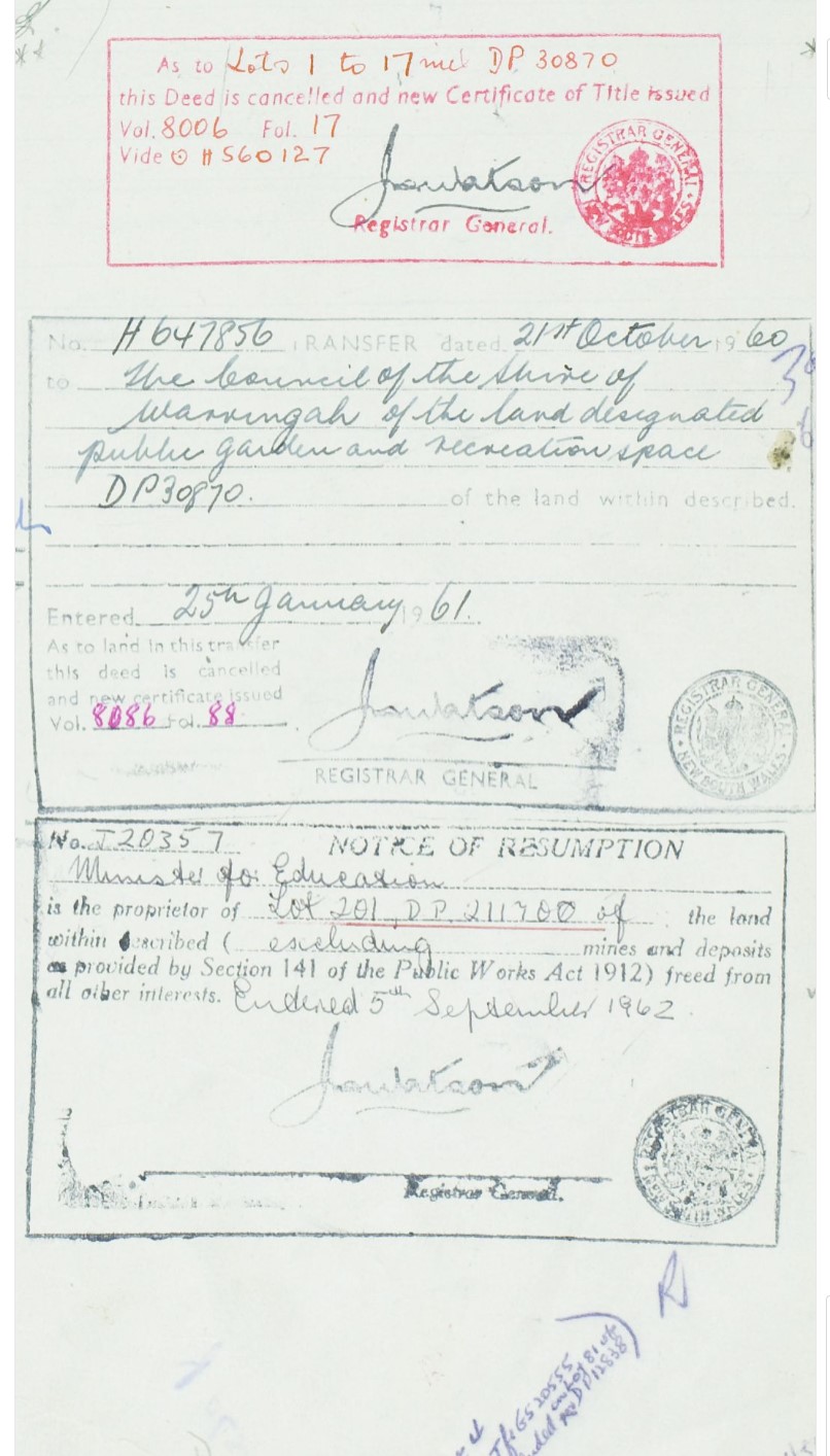 The sleepy holiday villages of the northern beaches began to be more permanently populated during the 1950’s, putting pressure on schools in Avalon and Newport. In September 1959 the Director of Primary Education advised the Valuer General to acquire land for the future Newport Heights Primary School. This purchase was formally completed in September 1960, and an area of “6 acres 3 roods 13 ¾ perches within the Parish of Narrabeen” was resumed for the proposed school.