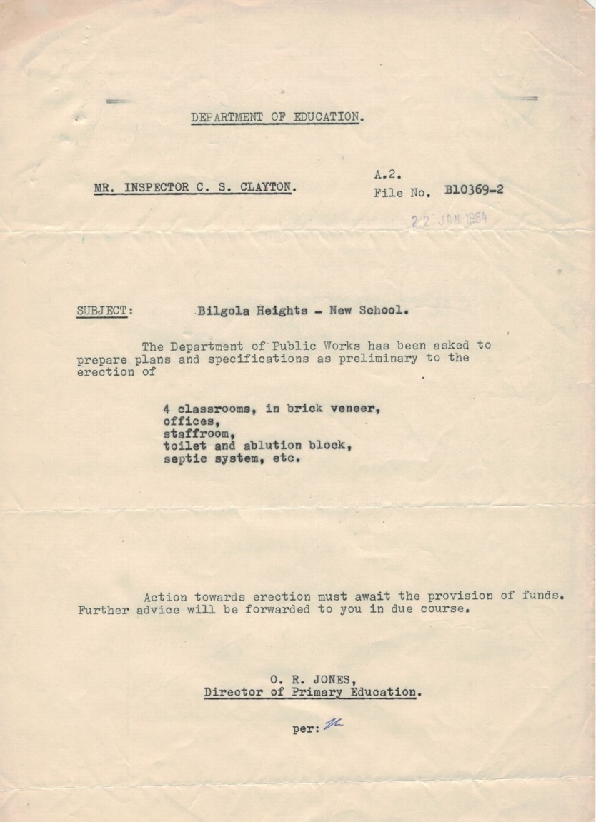 Bilgola Heights Public School—Levelling and preparation of site. (Specifications available, £1 each.) Department of Public Works—Tenders for Works (1964, September 25). Government Gazette of the State of New South Wales (Sydney, NSW : 1901 - 2001), p. 3034. Retrieved from http://nla.gov.au/nla.news-article220343176
