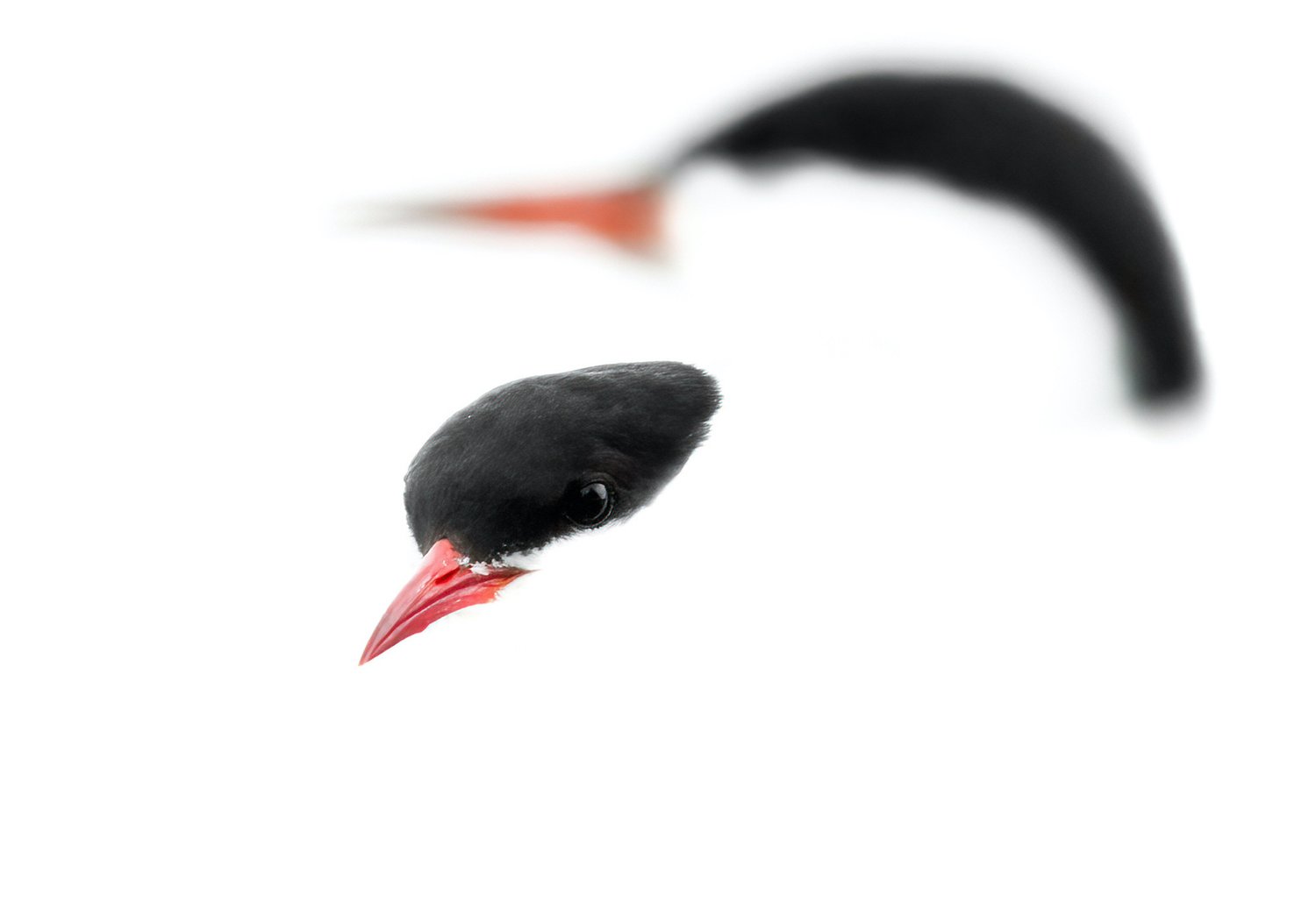 "In a small inlet in Örnsköldsvik, there are terns everywhere during summer. So, one afternoon on an overcast day, I headed down to the water with the goal of photographing terns in flight. Instead of that, I ended up photographing an Arctic and common tern perched together on a railing. By utilising the white of their bodies, the overcast weather and the bright reflections in the water, I captured a high-key image of the two terns."(© Harry Sedin/Bird Photographer of the Year)