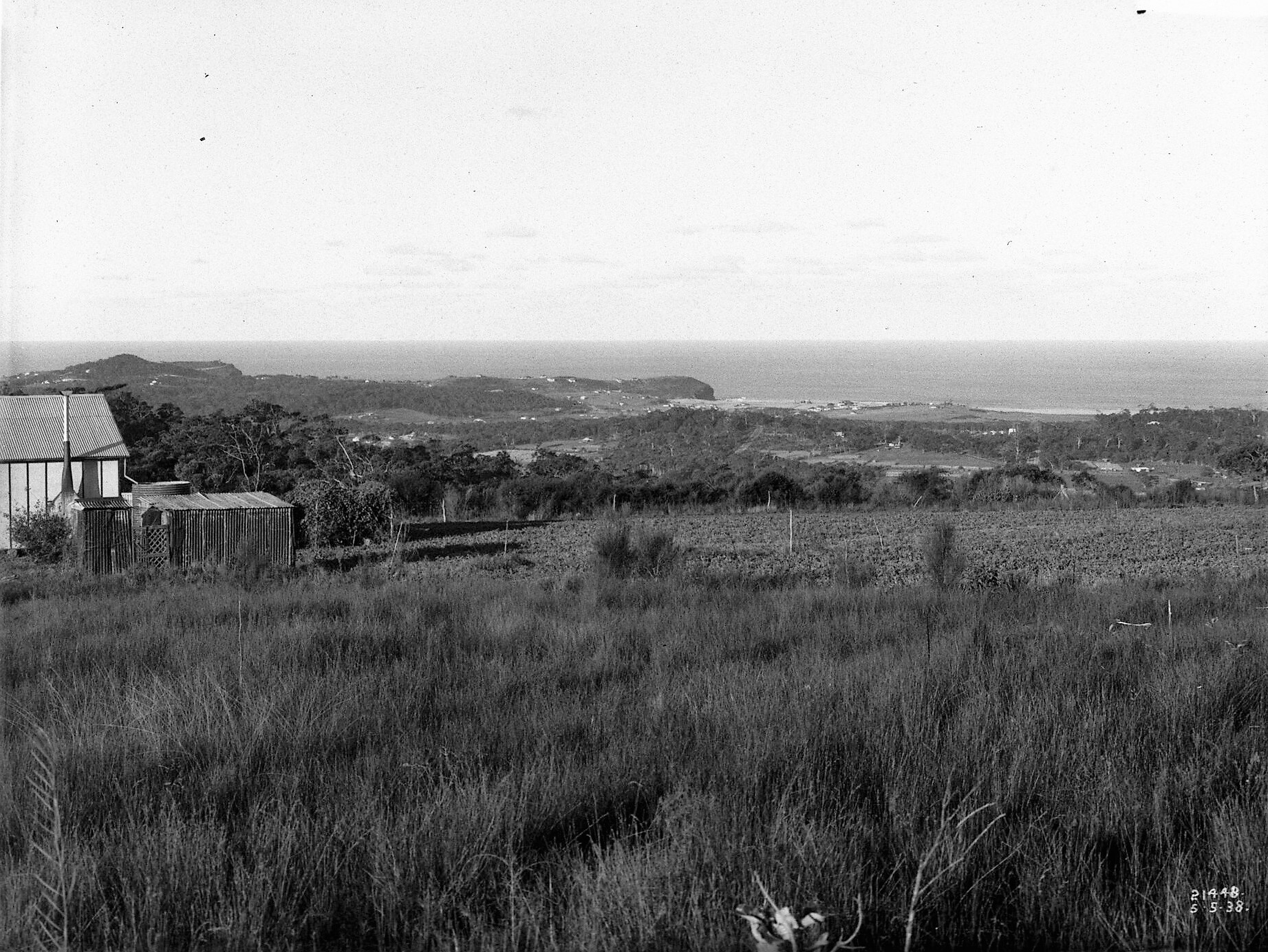 FROM: Album 57: Photographs of the Allen family, 2 May 1911 - 7 October 1911 Digital Order No. a3289055; 'Top: Enlargement of view taken looking over the Polo Grounds. The road up the hill leads to Barrenjoey' and Digital Order No. a3289054
