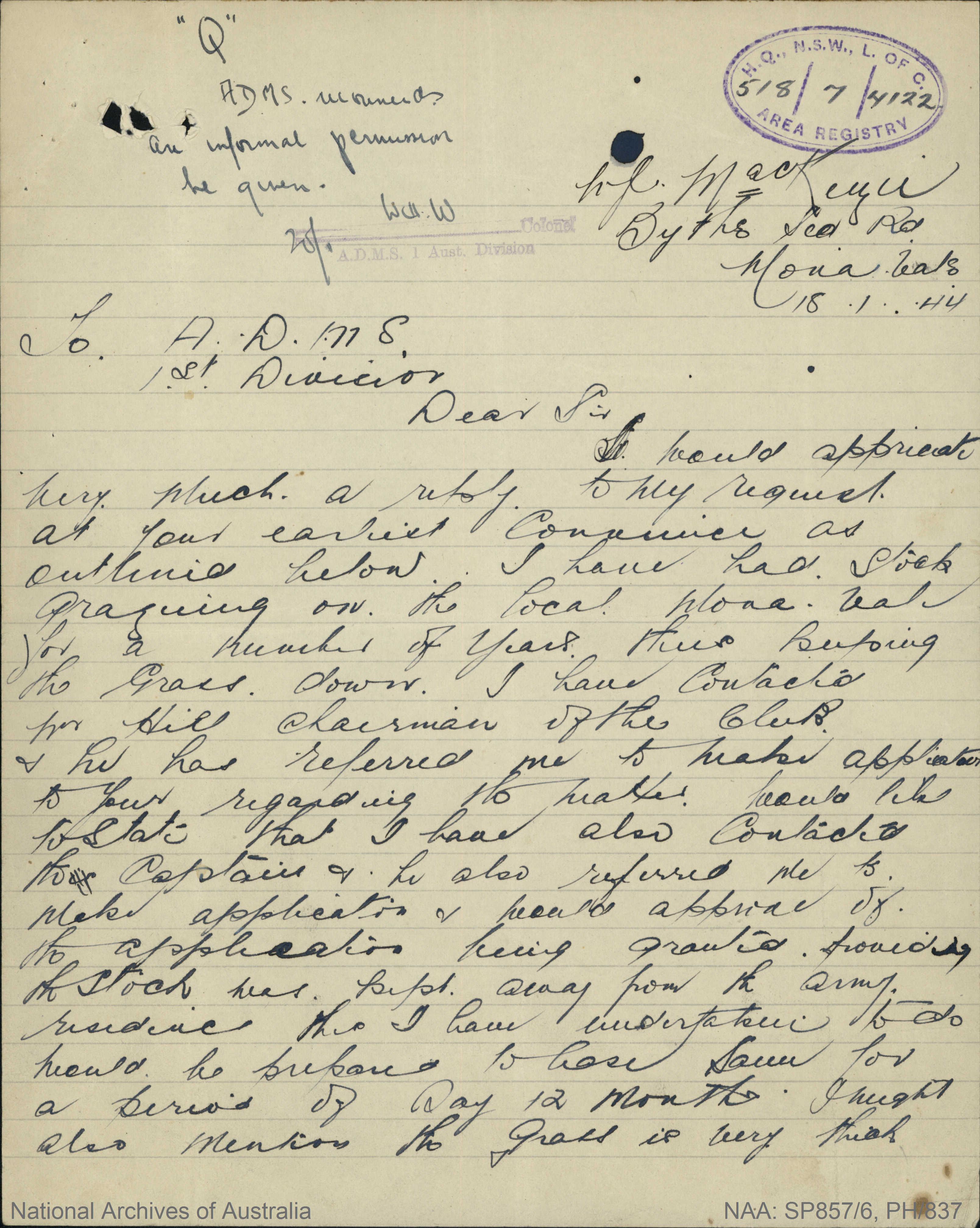 The president of the Mona Vale Club is Mr. F. C. V. Lane, formerly one of the most distinguished swimmers. The secretary is Mr. J. G. Blackwood, of Starkey and Starkey, York-street, and the treasurer Mr. L. Grant, of Mona Vale. "HE'S DEAD" (1923, February 25). Sunday Times (Sydney, NSW : 1895 - 1930), p. 3. Retrieved from http://nla.gov.au/nla.news-article120541900