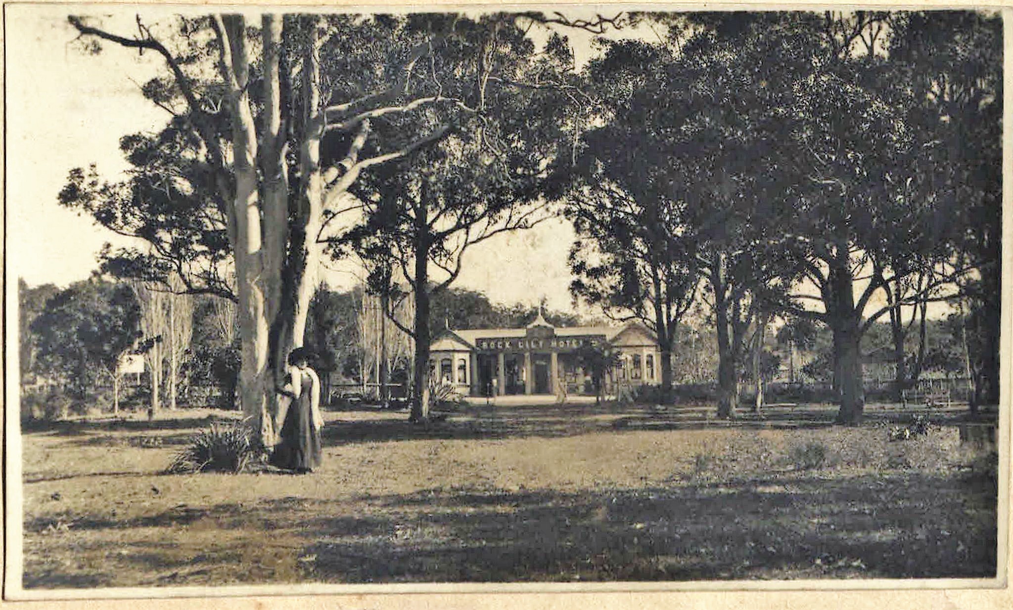 FROM: Album 57: Photographs of the Allen family, 2 May 1911 - 7 October 1911 Below Enlargement of view taken from Brock's house, 3rd of September, 1911'. Both Courtesy State Library of NSW. Shows the 'lake' verges of the Black Swamp were still present on Brock's former land holding in 1911, along with the polo ground.