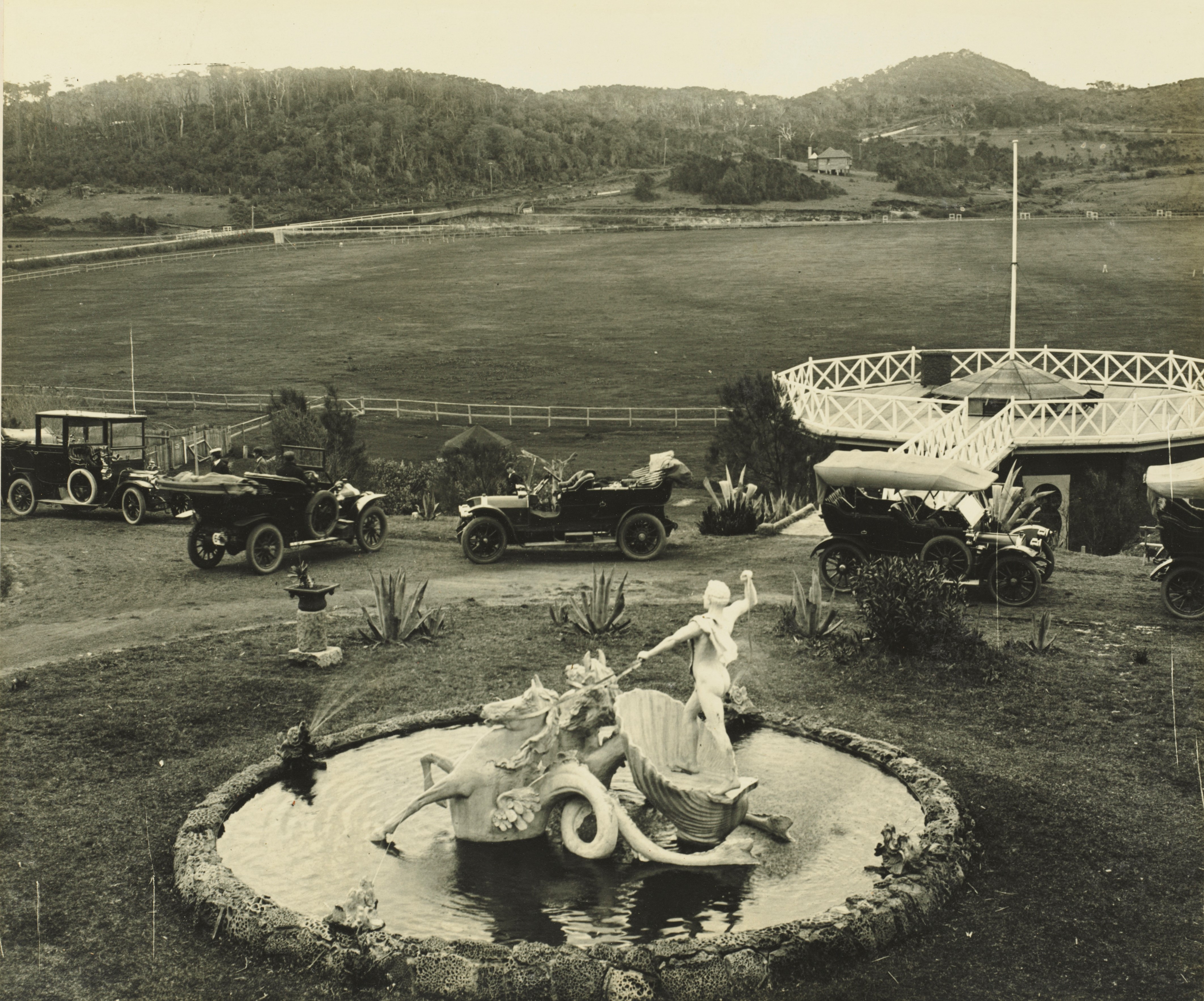 Gambolling after one of the young ladies is an alema, a curious animal,' something between a monkey and kangaroo, very pretty and perfectly harmless. Mr. Brock purposes starting A Dairy on the other side of the racecourse from the houses, for the use of the residents. He has had many handsome offers for the estate, but refused them all. Several of the would-be purchasers wished' to turn it into a pleasure resort, but as the probability was they would get a licence and sell drink Mr. Brock promptly refused to consider their proposals. As soon as the Government begin in earnest to build the Spit to Newport Tramway, Mr. Brock promises to put on 200 men to complete all the work which for years he has planned for this beautiful country home. If they do not start it in a reasonable time he may himself install a 80 passenger Motor-Coach, but only to "The Oaks" and only for the service of the people living there. Families will be able to come to the Oaks and stay any length of time at moderate expense enjoying all the delights of country and … farm life—without all the work. ' '