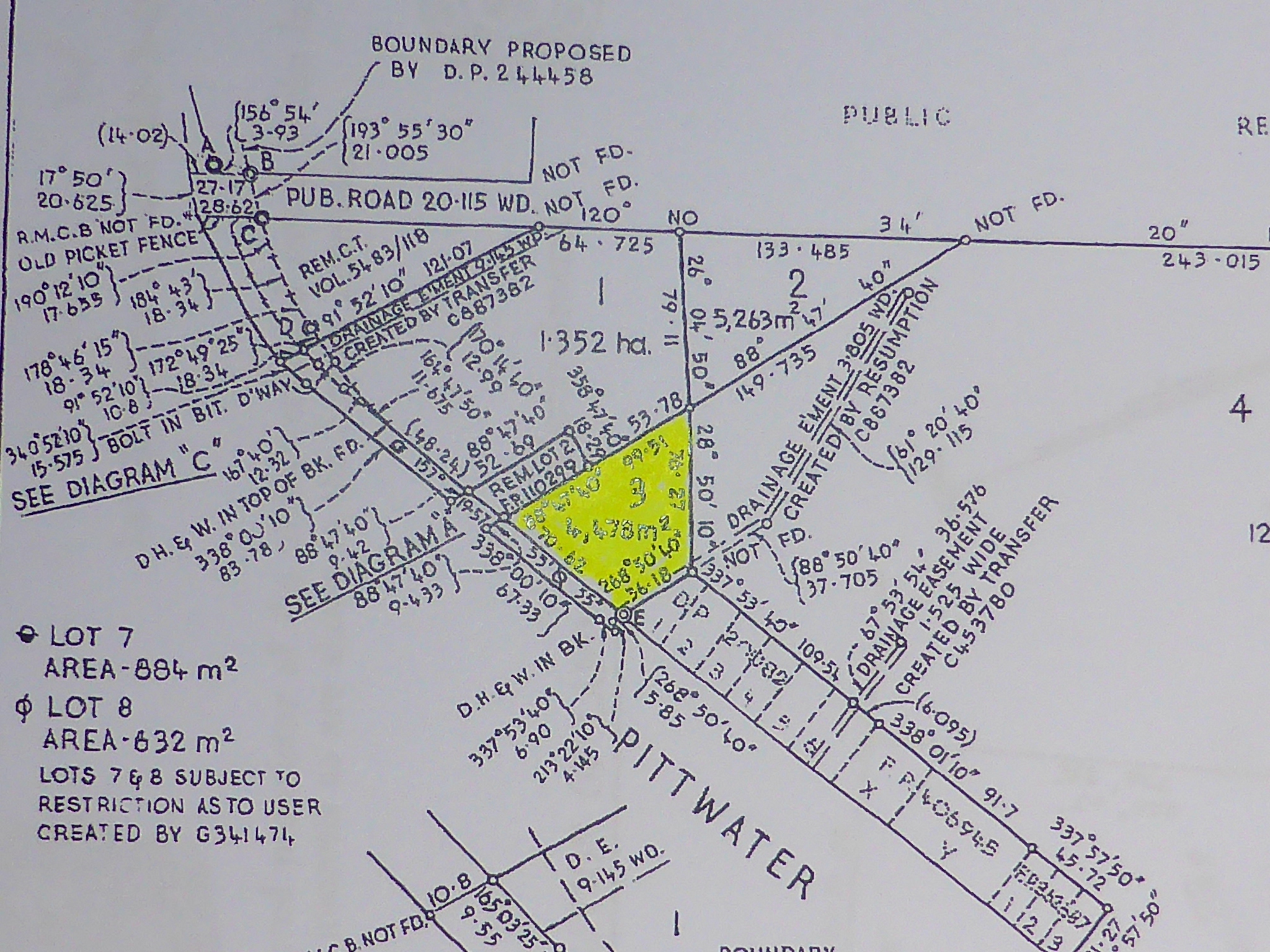All that piece or parcel of land containing 2 acres 1 rood 37 perches or thereabouts in the Shire of Warringah, parish of Narrabeen, county of Cumberland and State of New South Wales, being part of lot 4 on Miscellaneous Plan of Subdivision (Old System), Registered Number 8,037 and being part of the land in Certificate of Title, volume 6,797, folio 222: Commencing at a point on a south-eastern boundary of lot 4 on Miscellaneous Plan of Subdivision (Old System), Registered Number 8,037 which point bears 219 degrees 8 minutes 40 seconds 150 feet from the intersection of that boundary with a south-western alignment of Waterview-street and bounded thence on the south-east by part of that south-eastern boundary of lot 4 aforesaid bearing 219 degrees 8 minutes 40 seconds 461 feet H inches to the north-western corner of the land in Conveyance Registered Number 859, Book 2,234 and bounded thence on the south-west by part of a north-eastern boundary of the land in Certificate of Title, volume 2,879, folio 46 bearing 319 degrees 59 minutes 40 seconds 231 feet 111 inches to the easternmost corner of the land in Certificate of Title, volume 6,177, folio 72 and bounded thence on the north-west by part of the south-eastern boundary of the land in Conveyance Registered Number 940, Book 888, bearing 39 degrees 8 minutes 40 seconds 487 feet 10£ inches to the westernmost corner of lot 1 on Miscellaneous Plan of Subdivision (Old System), Registered Number 8,037 thence on the north-east by the south-western boundaries of lots 1, 2 and 3 on the abovementioned Miscellaneous Plan and their prolongation south-easterly bearing 146 degrees 19 minutes 40 seconds 238 feet 5 inches to the point of commencement